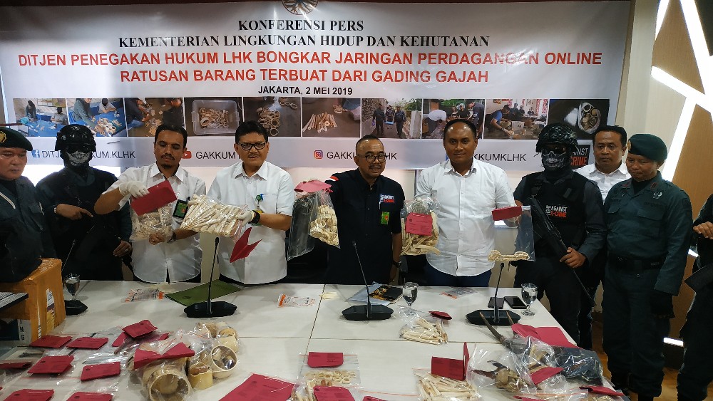 Jakarta, Kementerian Lingkungan Hidup dan Kehutanan (KLHK), Kamis, 2 Mei 2019. Terungkapnya perdagangan ilegal gading gajah secara online di Kabupaten Pati, Jawa Tengah mengancam kelestarian Gajah di ...