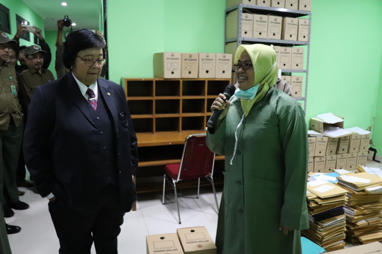 Jakarta, Kementerian Lingkungan Hidup dan Kehutanan (KLHK), Selasa, 30 April 2019. Menteri LHK, Siti Nurbaya kunjungi Kantor Pusat Kearsipan KLHK di Cimanggis Bogor. Dalam kunjungannya Menteri Siti me...
