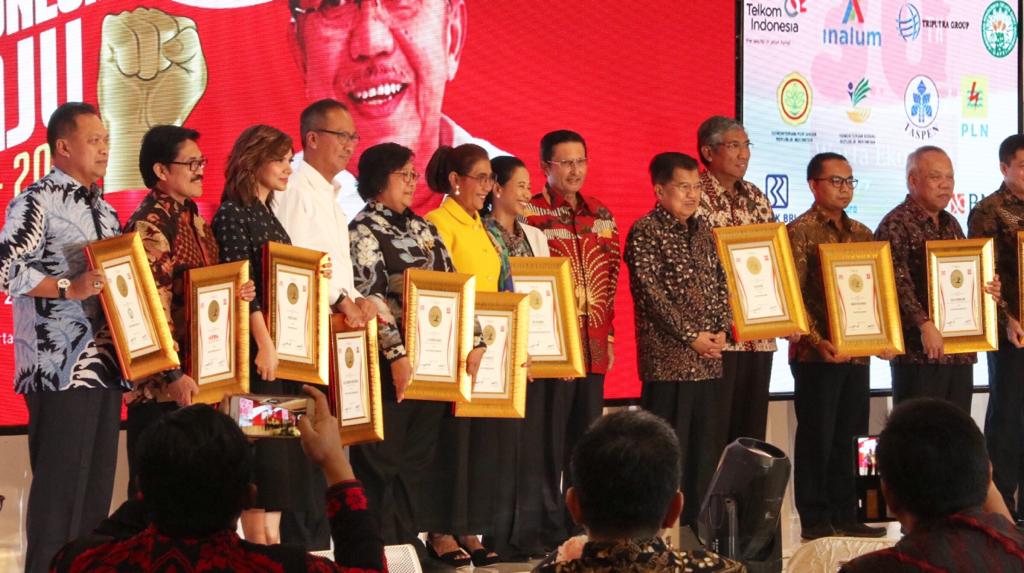 Menteri LHK Siti Nurbaya menerima penghargaan Anugerah Indonesia Maju 2018-2019 untuk kategori Tokoh Reformasi Kehutanan Rakyat. Penghargaan tersebut diberikan secara langsung oleh Wakil Presiden RI J...