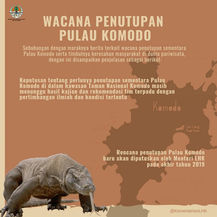 Hingga saat ini keputusan tentang perlunya penutupan sementara Pulau Komodo masih menunggu hasil kajian dan rekomendasi tim terpadu. Hal ini disampaikan oleh Direktur Jenderal Konservasi Sumber Daya A...