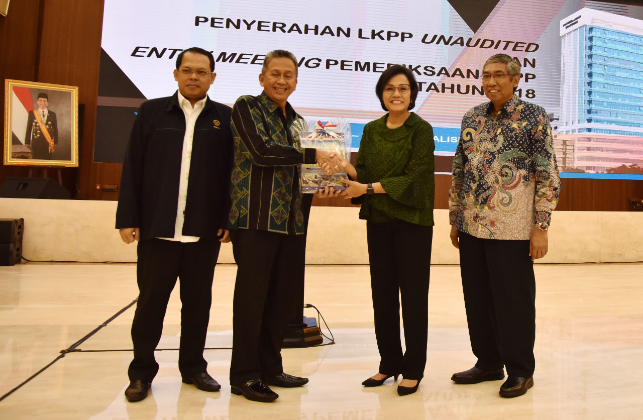 Laporan Keuangan Pemerintah Pusat (LKPP) tahun 2018 yang belum diperiksa (unaudited) resmi diserahkan oleh Pemerintah kepada Badan Pemeriksa Keuangan (BPK) di Jakarta, Rabu (27/3). Menteri Keuangan ya...