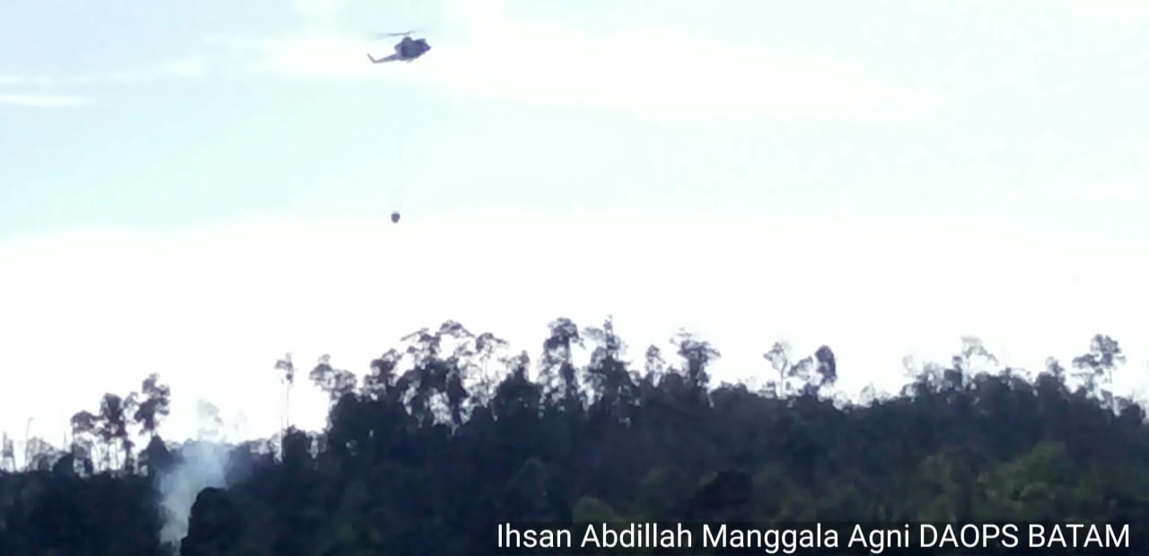 KLHK menerjunkan helikopter untuk memadamkan kebakaran hutan dan lahan (karhutla) yang terjadi di Kelurahan Tanjung Riau Kecamatan Sekupang Kota Batam (12/02/2019). Satu unit helikopter Jenis Heli Bel...