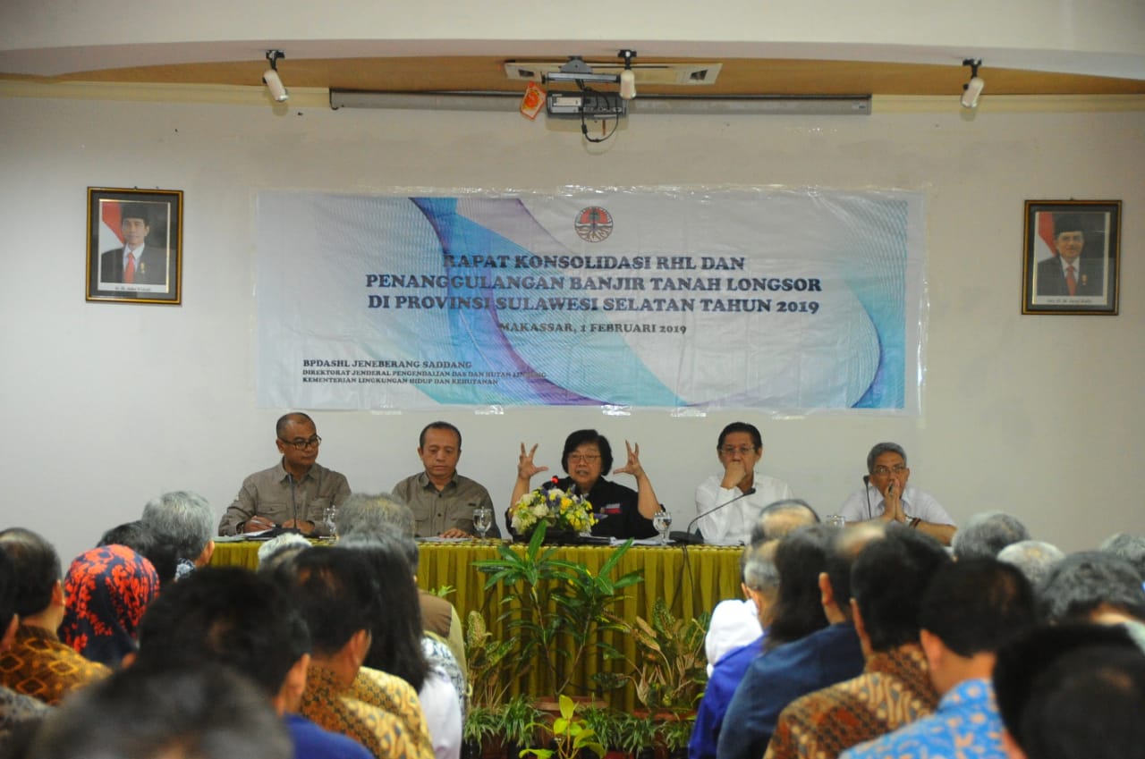 Menteri LHK, Siti Nurbaya memberikan arahan langsung kepada Kepala Balai Pengelolaan Daerah Aliran Sungai dan Hutan Lindung (BPDAS-HL) se-Indonesia pada saat Rapat Persiapan Pelaksanaan Kegiatan RHL 2...