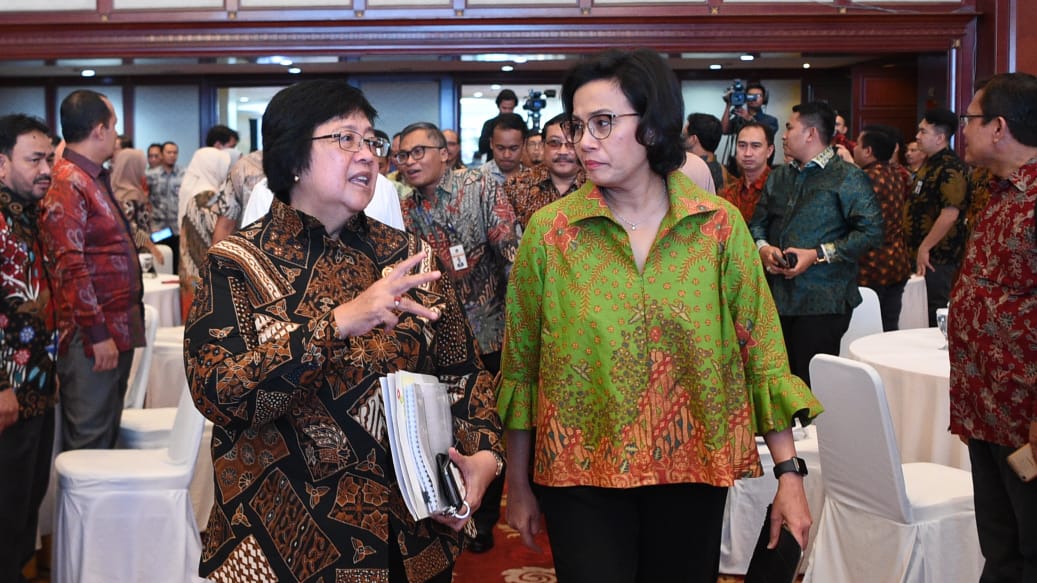 Menteri LHK Siti Nurbaya menyerahkan Daftar Isian Pelaksanaan Anggaran (DIPA) tahun anggaran 2019 kepada 13 Pimpinan Eselon I yang berada di lingkungan KLHK, di Jakarta, (20/12). Total kekuatan fiskal...