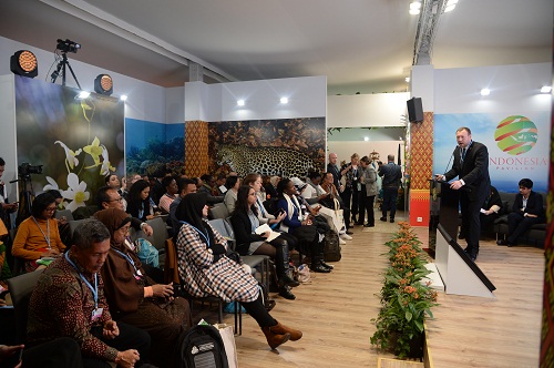 Penanganan kebakaran hutan dan lahan di Indonesia menjadi salah satu agenda dalam Talkshow yang diselenggarakan Paviliun Indonesia pada COP 24 UNFCCC di Katowice, Polandia (10/12). Mengangkat tema Dev...