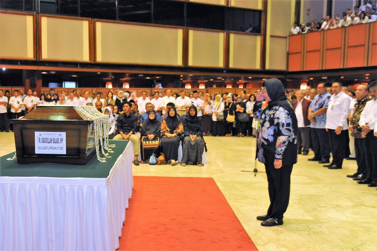 Menteri Lingkungan Hidup dan Kehutanan Siti Nurbaya, melepas jenazah Kasubdit Inventarisasi Hutan pada Direktorat Inventarisasi dan Pemantauan Sumber Daya Hutan, Dirjen Planologi Kehutanan dan Tata Li...