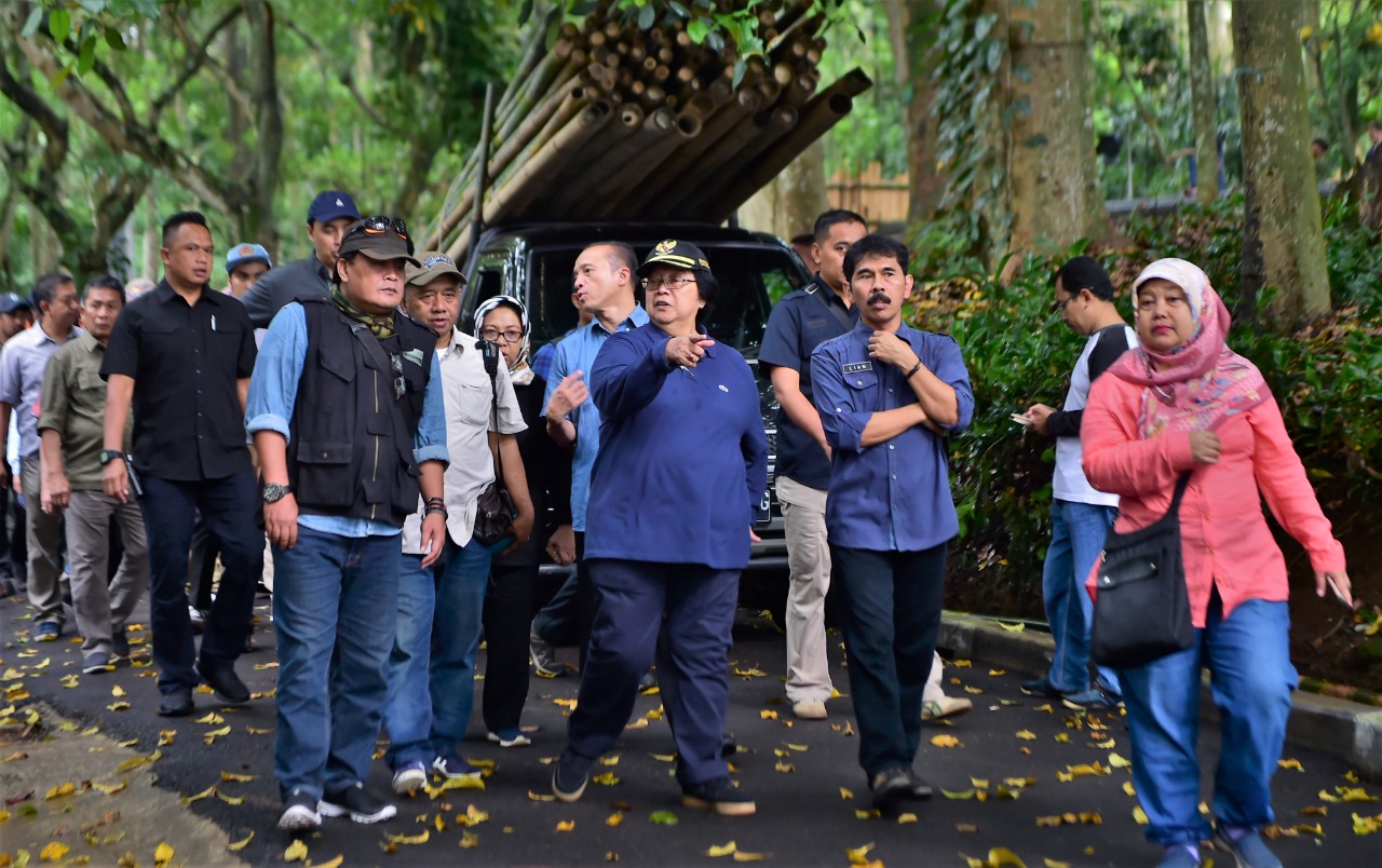 Menteri LHK, Siti Nurbaya meninjau persiapan lokasi pelaksanaan penyerahan Surat Keputusan (SK) Perhutanan Sosial yang bertempat di Taman Hutan Raya Ir. H. Djuanda, Kecamatan Cimenyan, Bandung, Jawa B...