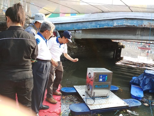 Jakarta, Kementerian Lingkungan Hidup dan Kehutanan (KLHK), Sabtu, 11 Agustus 2018. Sebagai upaya mengurangi bau dan meningkatkan kadar oksigen di Kali Sentiong secara cepat, KLHK memasang 4 (empat) u...