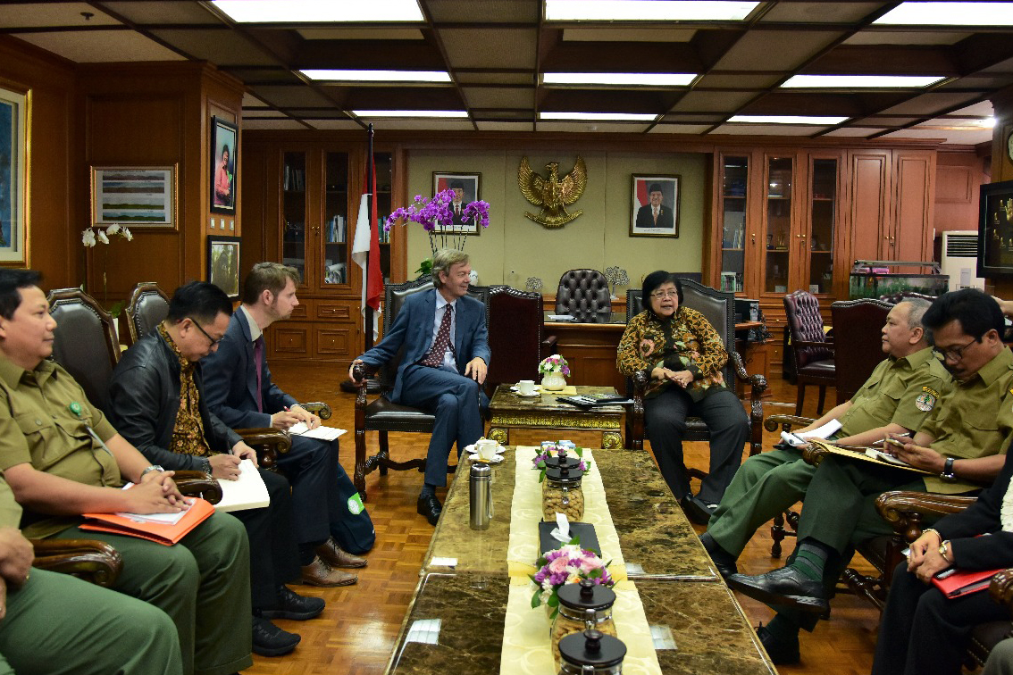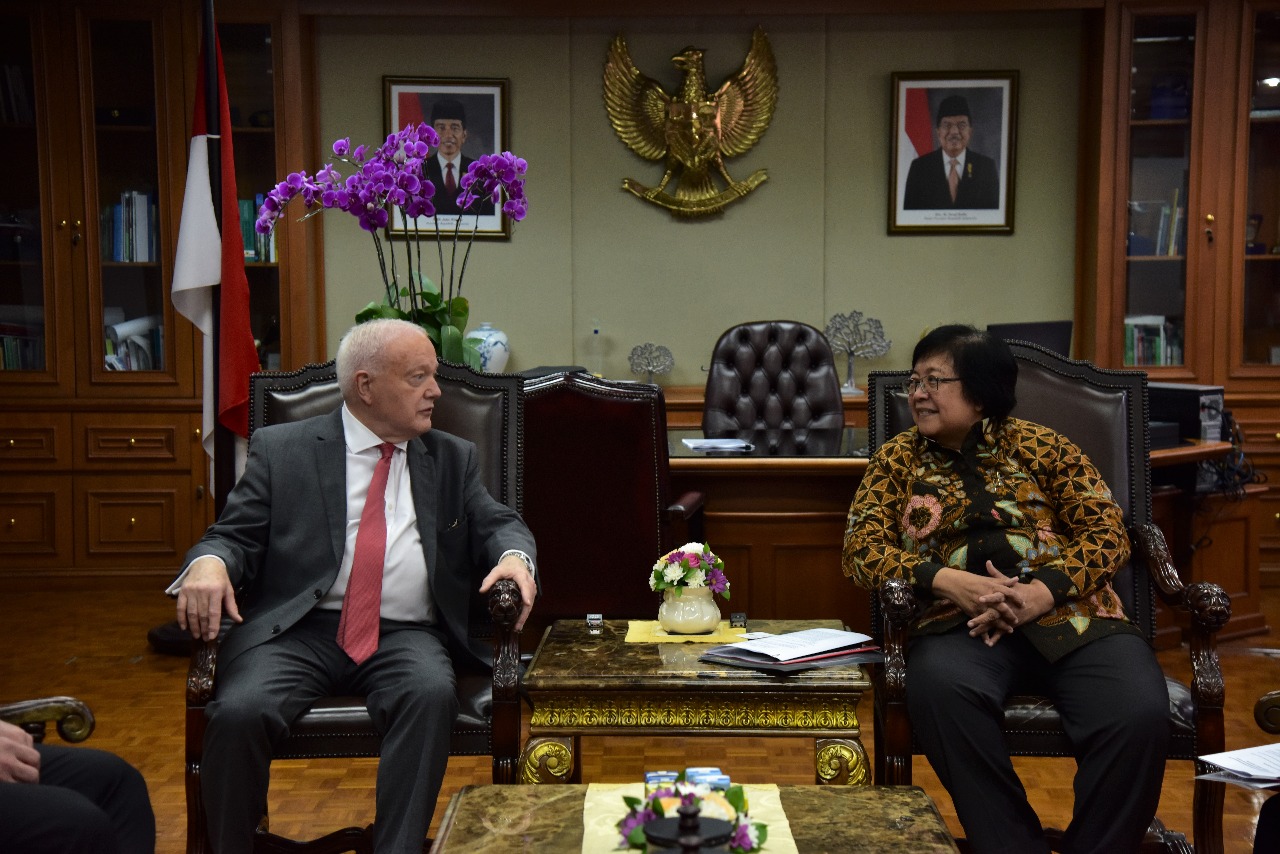 Menteri LHK Siti Nurbaya menerima kunjungan Duta Besar Jerman untuk Republik Indonesia di gedung Manggala Wanabakti, Jakarta (13/7/2018). H.E. Michael Freiherr von Ungern-Sternberg menemui Siti Nurbay...