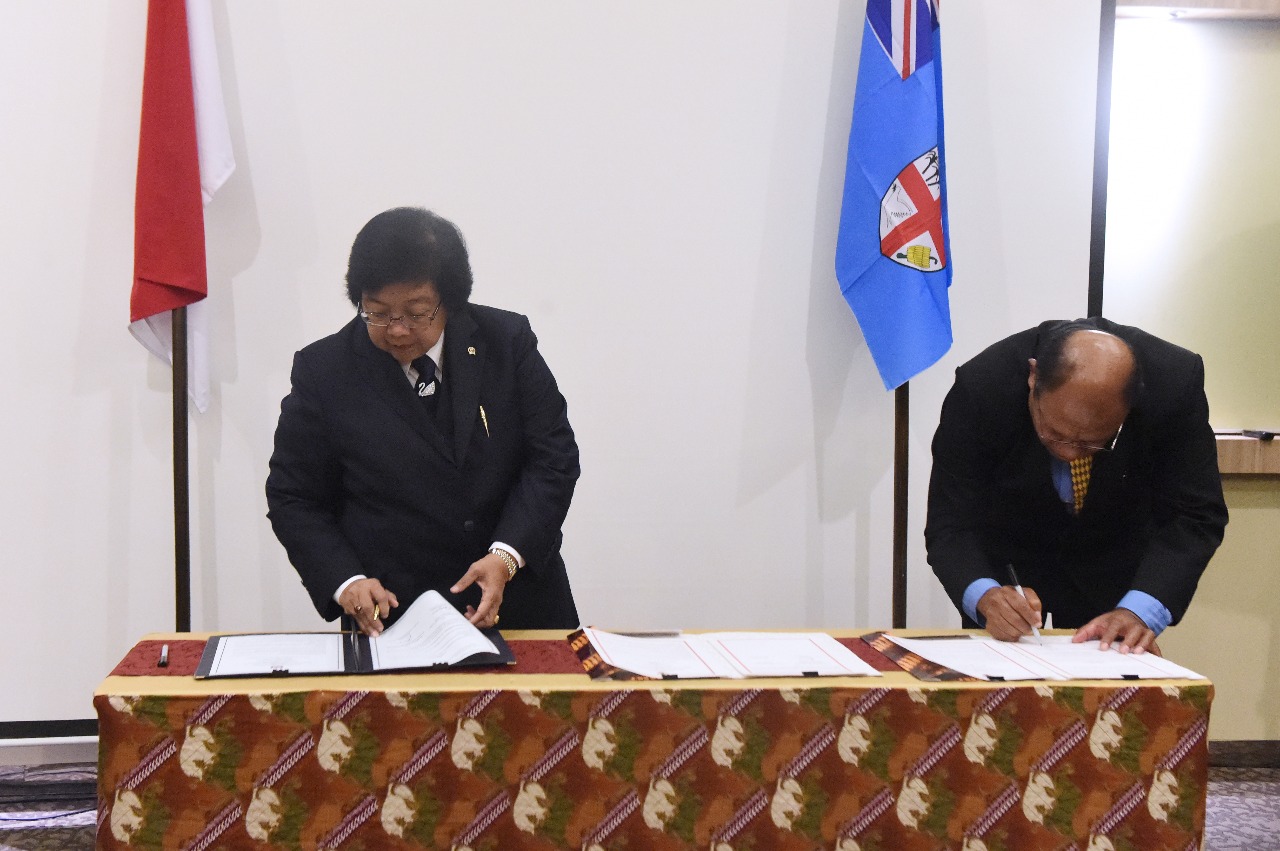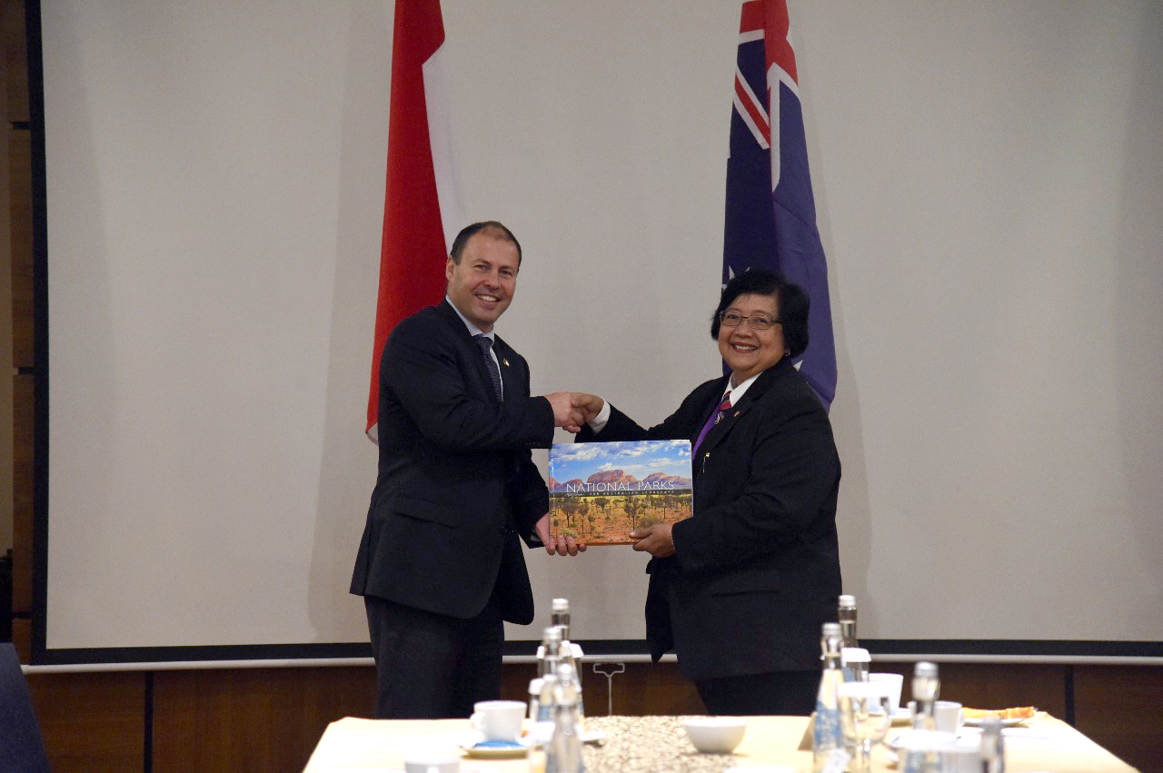Di sela-sela penyelenggaraan Asia Pacific Rainforest Summit (APRS) ketiga. Menteri Lingkungan Hidup dan Kehutanan Republik Indonesia, Siti Nurbaya dan Menteri Lingkungan dan Energi Australia, H.E. Jos...