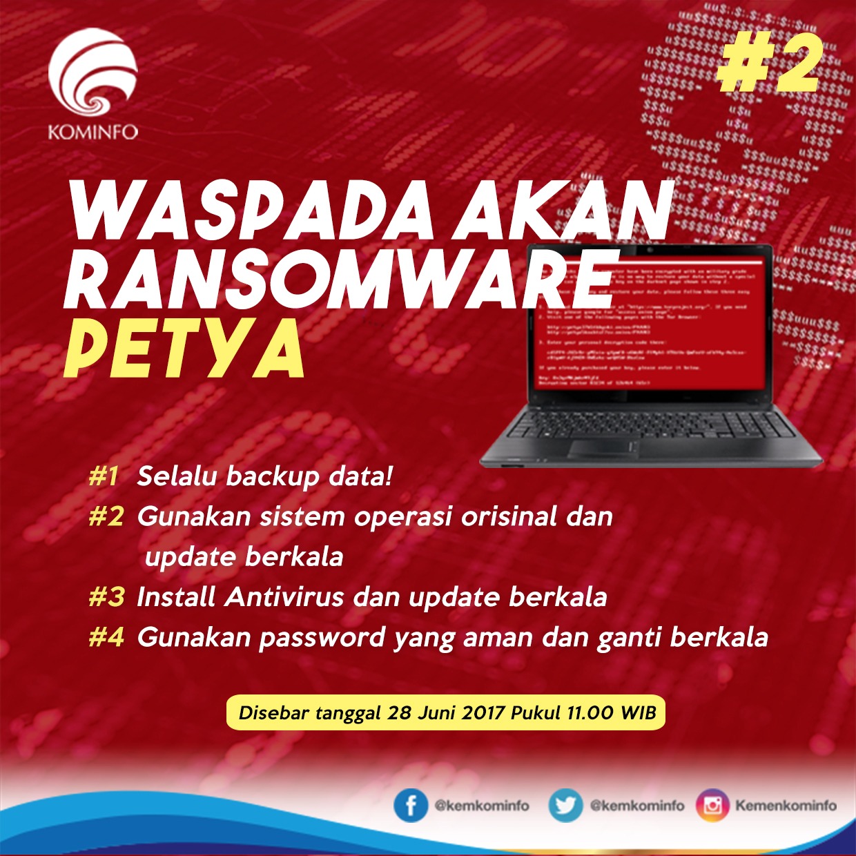 Saat ini dalam skala global sedang terjadi serangan virus ransomware PETYA. Cara bekerja virus PETYA mirip dengan ransomware WANNACRY yang menyerang skala global pada 13 Mei yang lalu. Pemer...
