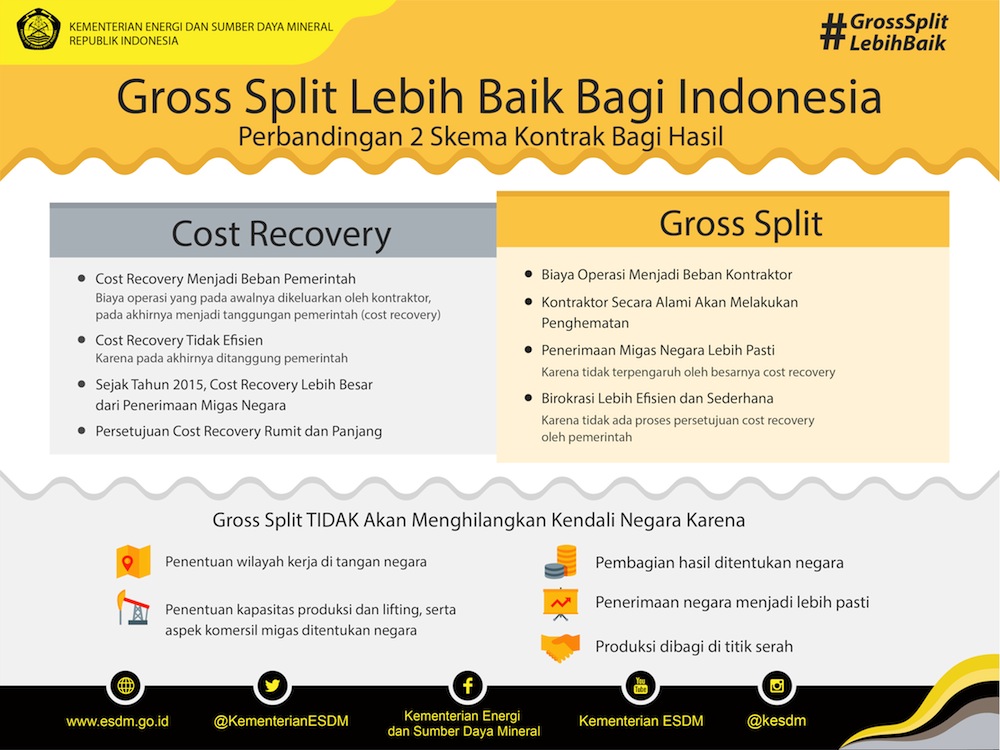 Demi mewujudkan energi yang berkeadilan di Indonesia, Kementerian Energi dan Sumber Daya Mineral (ESDM) menerapkan skema Gross Split, untuk perhitungan bagi hasil kontrak pengelolaan wilayah kerja Min...