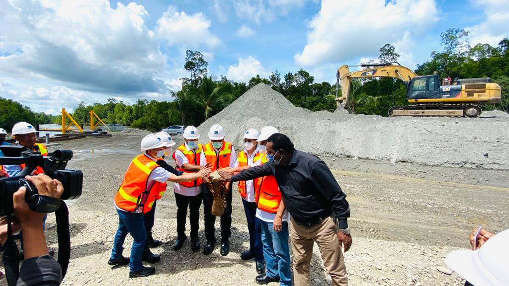 Kementerian Lingkungan Hidup dan Kehutanan (KLHK) dan Kementerian Pekerjaan Umum dan Perumahan Rakyat (KPUPR) melepas tailing PT Freeport Indonesia (PTFI) dari Jetty Jembatan 2 Mill Post 11 Wilayah Kerja PT Freeport Indonesia di Kabupaten Mimika ke Dermaga Kali Tamu di Merauke sebanyak 4.000 Ton untuk digunakan sebagai material agregat infrastruktur jalan di Merauke, Selasa (15/12). Kegiatan pemanfaatan tailing ini, pertama kali dilakukan selama berdirinya PT. Freeport Indonesia.