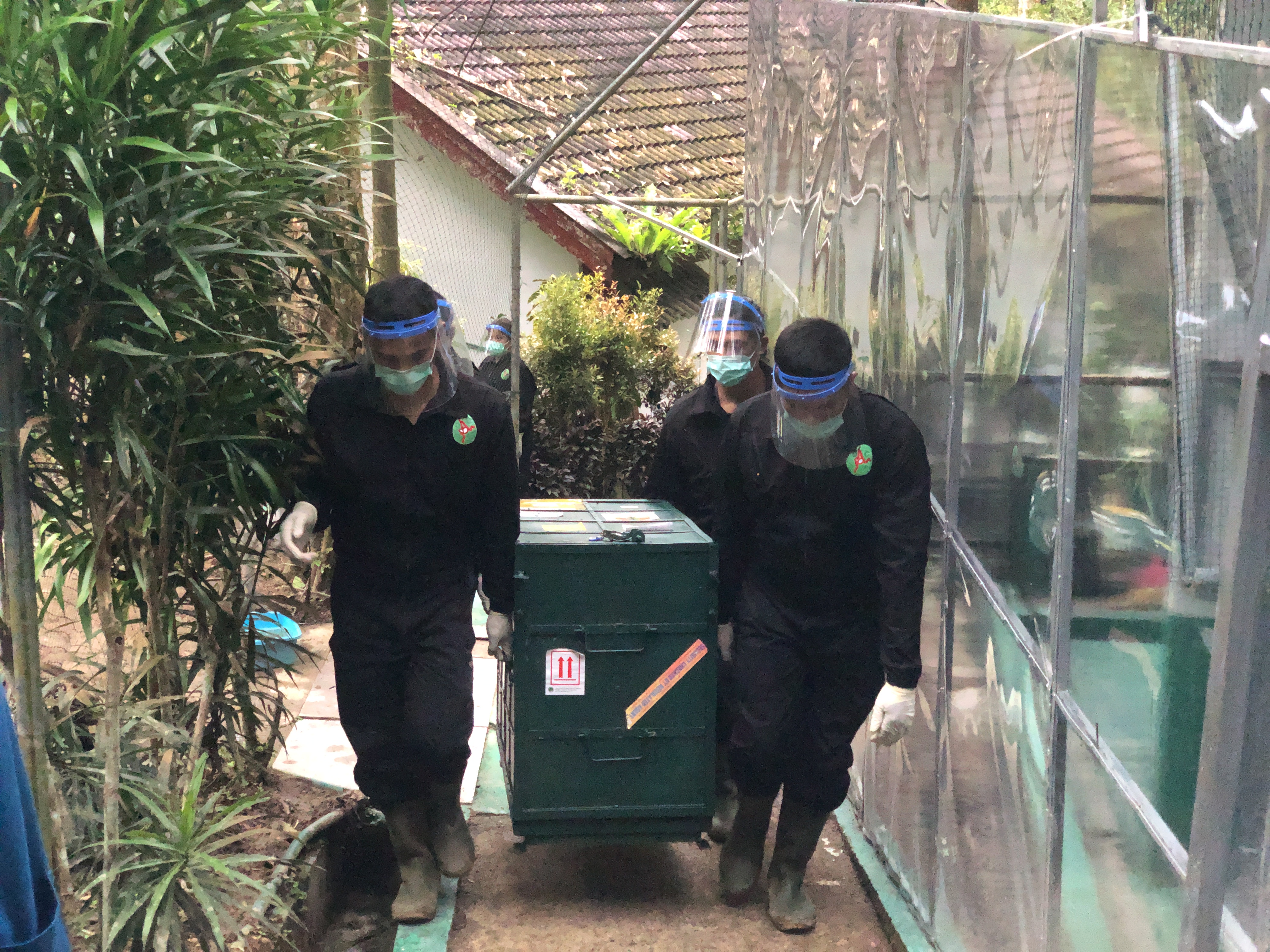 Di lokasi yang berbeda, Kepala Balai Konservasi Sumber Daya Alam Jambi (BKSDA Jambi), Rahmad Saleh, menyampaikan bahwa 2 (dua) orangutan ini akan menjalani proses karantina yang bekerjasama dengan Frankfurt Zoogical Society (FZS).