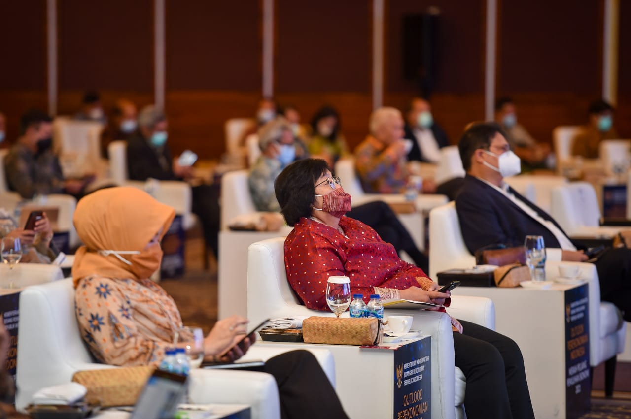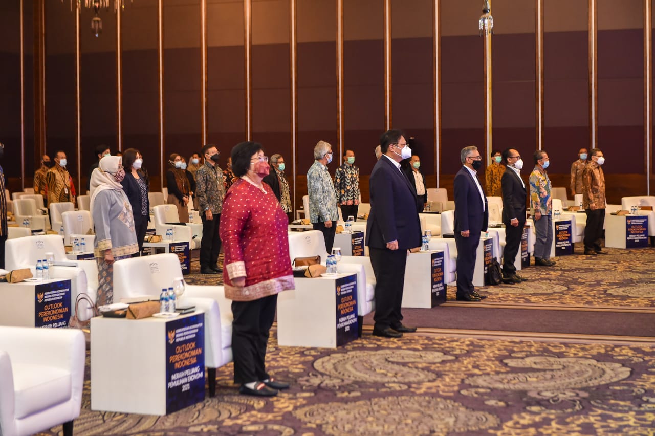 Menteri Koordinator bidang Perekonomian, Airlangga Hartarto saat memberikan pidato kunci, menyampaikan optimisme pemerintah dalam menghadapi tantangan dan peluang pada tahun 2021. "Tahun 2021 adalah tahun yang penuh peluang, tahun pemulihan ekonomi nasional. Tahun 2021 adalah tahun kembali bekerja, kembali mengembangkan usaha, optimis memanfaatkan peluang, dan memberi semangat kepada kita semua," ucap Menteri Airlangga.