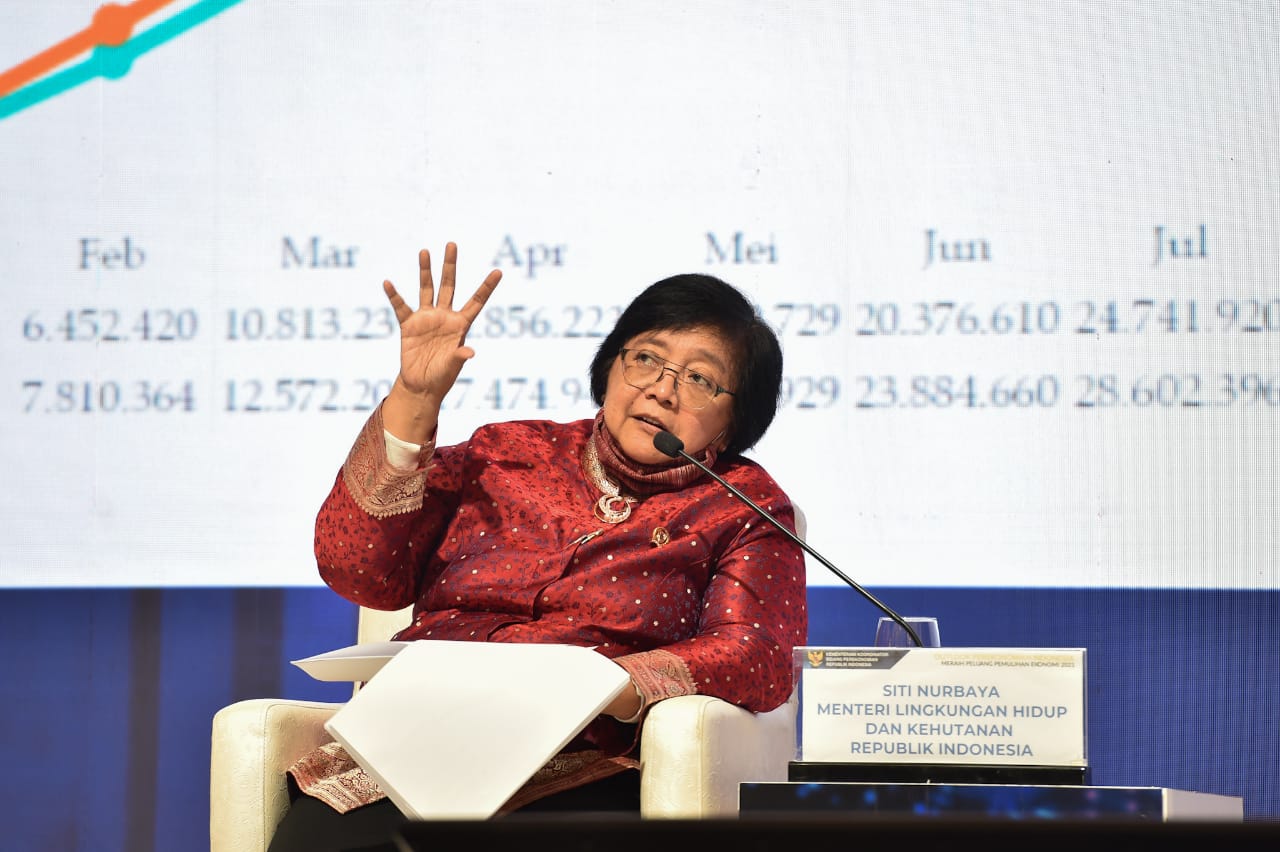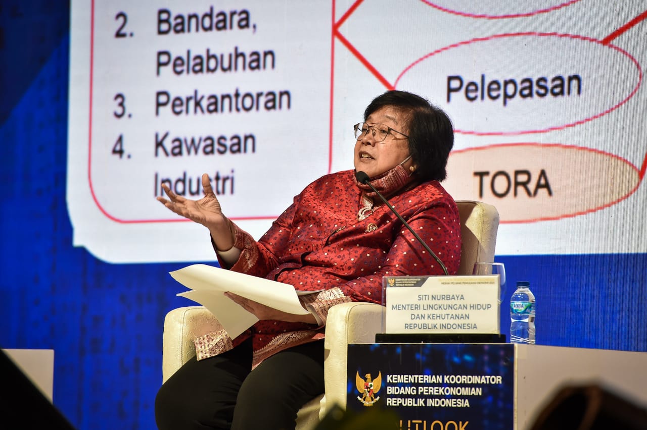 Menteri Lingkungan Hidup dan Kehutanan (LHK), Siti Nurbaya menjadi salah satu panelis dalam Dialog Nasional Outlook Perekonomian Indonesia di Jakarta (22/12/2020). Pada awal paparannya, Menteri Siti bersyukur mendapatkan kesempatan berbicara mengenai persoalan ekonomi yang menurutnya jarang didapati.