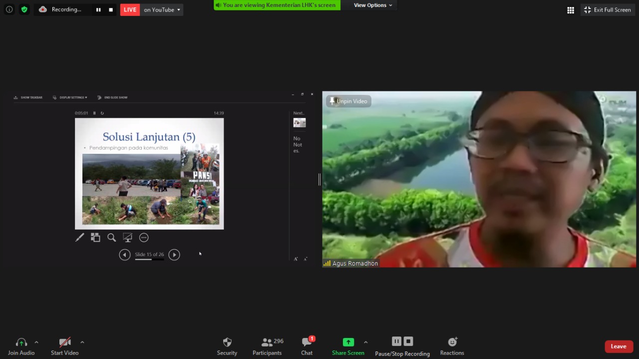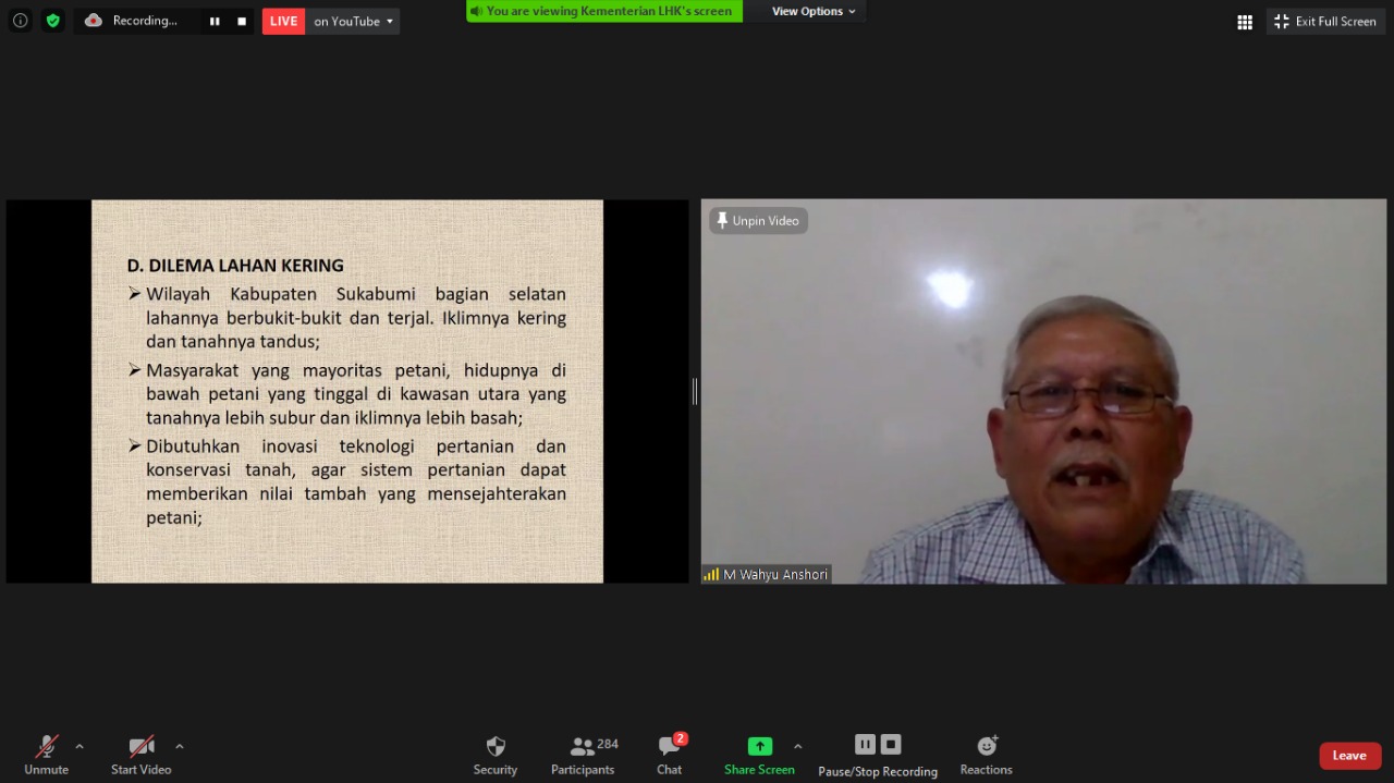 Penyuluh Kehutanan Swadaya Masyarakat, Kabupaten Sukabumi, Provinsi Jawa Barat, Maman Suparman, dalam pemaparannya menjelaskan pelestarian tidak cukup melalui kegiatan konservasi, tetapi juga harus dibarengi dengan rekayasa sosial, melibatkan segenap pemangku kepentingan termasuk kaum milenial melalui kegiatan ekonomi kreatif berbasis sumber daya lokal pedesaan dan sistem pertanian berkelanjutan.