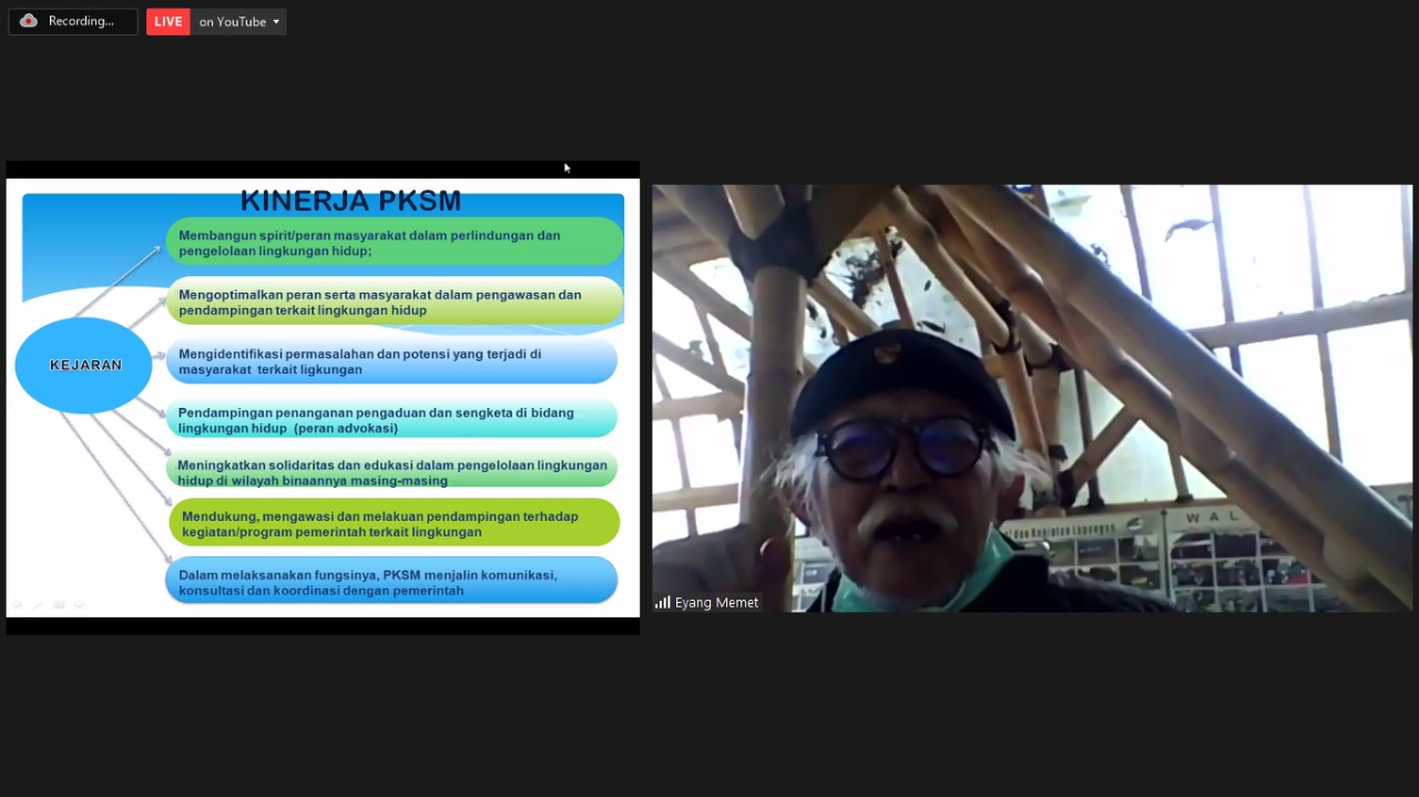 Selanjutnya, Penyuluh Kehutanan Swadaya Masyarakat, Kabupaten Bandung, Provinsi Jawa Barat, Eyang Memet dalam paparannya menyampaikan amanat atau pesan leluhur Sunda yang dapat disinergikan dengan masa kini. Pesan leluhur Sunda tersebut berisi wejangan dan anjuran untuk memanfaatkan ruang secara bijaksana dan memelihara lingkungan. Eyang mamet mengajak generasi muda untuk bersama-sama merapatkan barisan dan melepaskan ego sektoral masing-masing untuk mengembalikan daya dukung lingkungan sebagaimana para leluhur amanatkan.