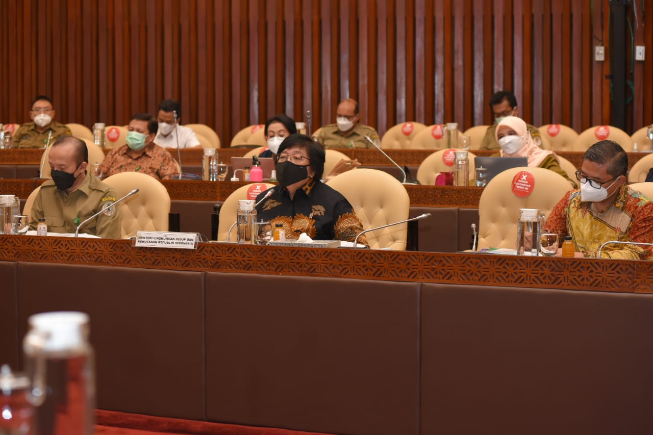 Menteri Lingkungan Hidup dan Kehutanan Siti Nurbaya menghadiri Rapat Kerja (Raker) dengan Komisi IV DPR RI di Gedung DPR RI Senayan, Jakarta, Senin (1/2). Pada Raker yang dipimpin oleh Ketua Komisi IV DPR RI Sudin, Menteri Siti menyampaikan Realisasi Kegiatan Tahun 2020, refocusing dan realokasi APBN Tahun Anggaran 2021, Strategi Pelaksanaan Kegiatan Tahun 2021, serta isu-isu aktual lainnya.