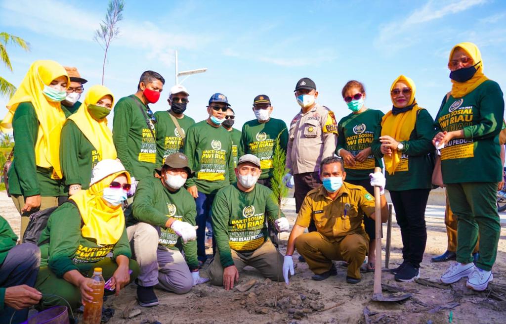 Peringati HPN 2021, KLHK - PWI Riau Hijaukan Pantai Pesona Pulau Rupat