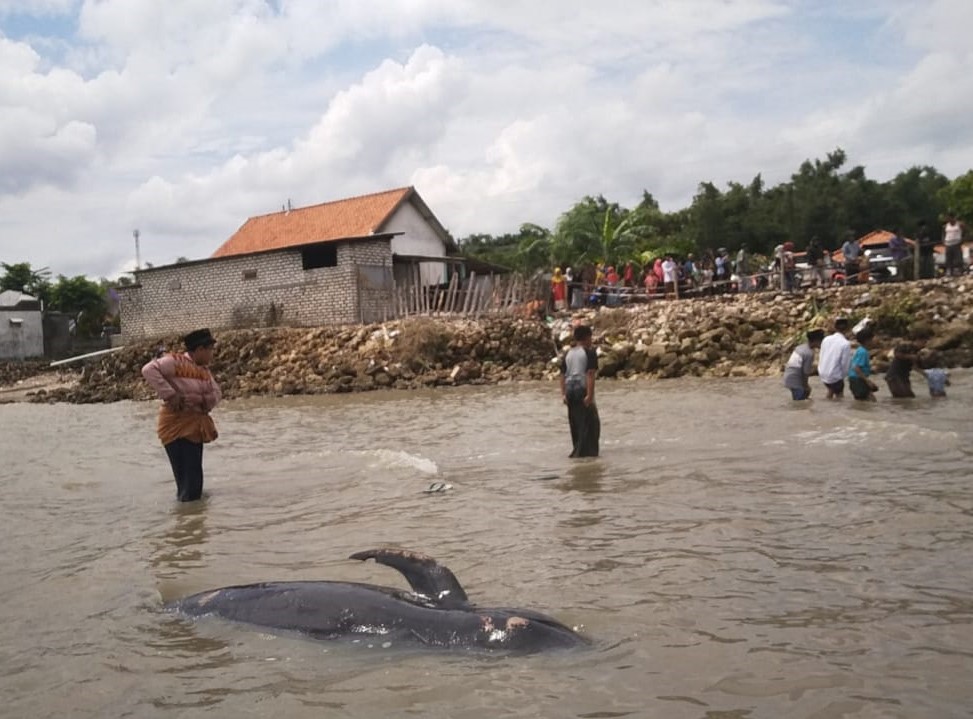 Puluhan paus pilot sirip pendek (short finned pilot whale) atau Globicephala macrorhynchus terdampar di pantai sisi selatan Pulau Madura, tepatnya di Desa Patereman, Kecamatan Modung, Kabupaten Bangkalan, Kamis (17/2). Dari 52 ekor yang ditemukan, 3 ekor dalam kondisi hidup, dan 49 ekor dalam kondisi mati.
