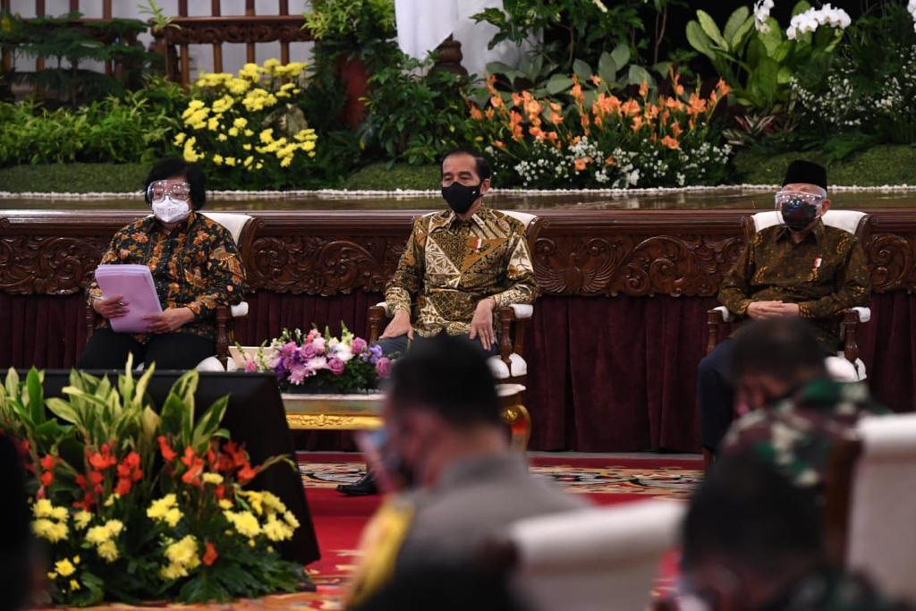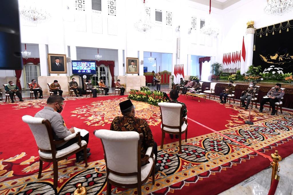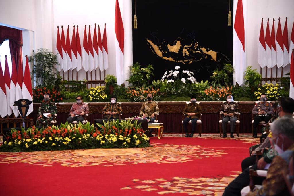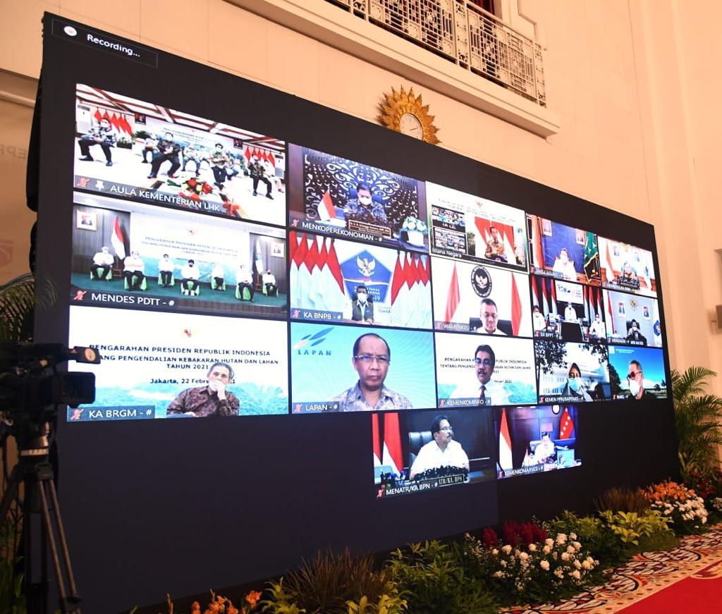 Presiden Jokowi mengumpulkan secara hybrid (luring dan daring) lebih dari 300 orang yang terdiri dari Menteri dan Kepala Lembaga, Gubernur dan Bupati/Walikota wilayah Rawan Karhutla beserta Pangdam/Danrem, Dandim, Kapolda, Kapolres, dan para pelaksana teknis lapangan BPBD, Kepala UPT lingkup KLHK serta Koordinator dan Kepala Daerah Operasi Manggala Agni untuk memberikan arahan pengendalian karhutla tahun 2021, dari Istana Negara, Jakarta, (22/02/2021).