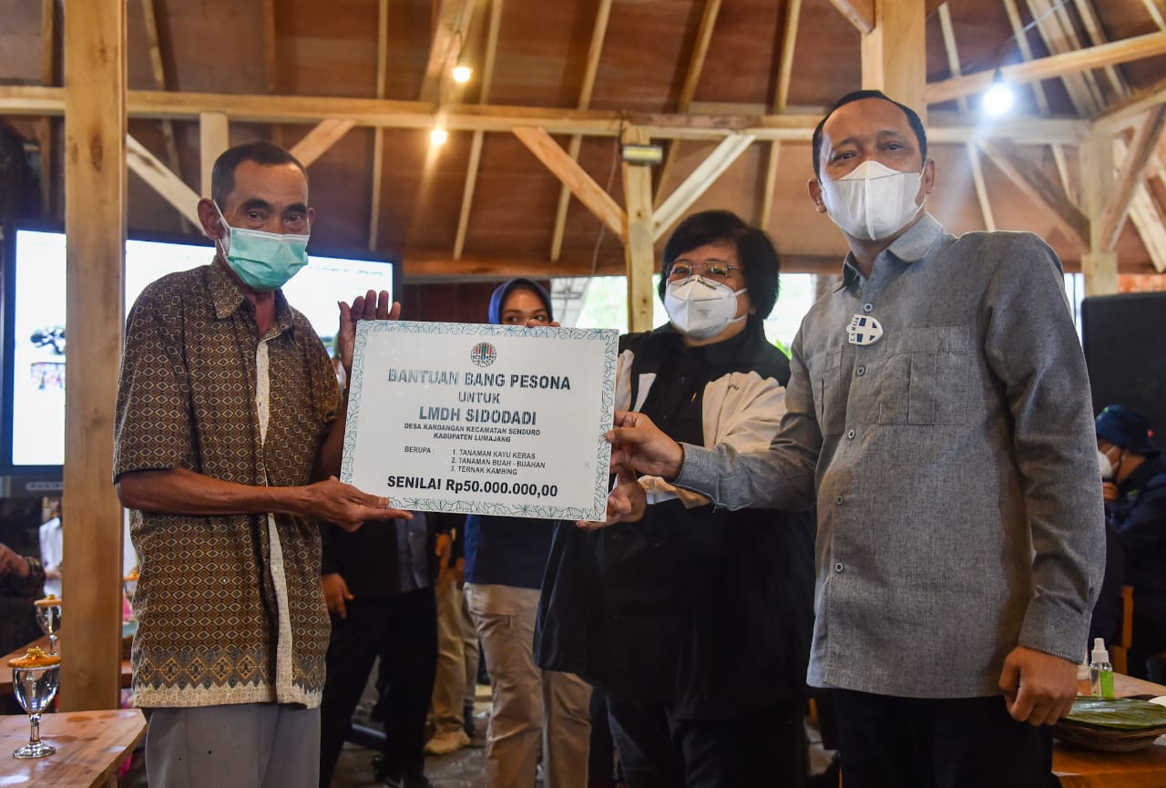 Selanjutnya, perlu bantuan baik berupa akses permodalan maupun pendampingan, juga fasilitasi dari pemerintah. Oleh karena itu, pada kesempatan tersebut Menteri Siti memberikan bantuan Pengembangan Perhutanan Sosial Nasional (Bang Pesona) dan alat ekonomi produktif bagi masyarakat yang telah berhasil mengelola akses perhutanan sosial dengan baik.