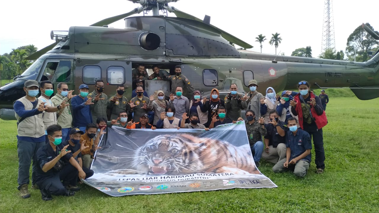 penggunaan helikopter ini bukan hanya untuk mempersingkat waktu perjalanan saja, namun untuk memastikan bahwa lokasi pelepasliaran Harimau Sumatera tersebut terjamin keamanannya bagi satwanya dan tidak terjangkau oleh manusia.