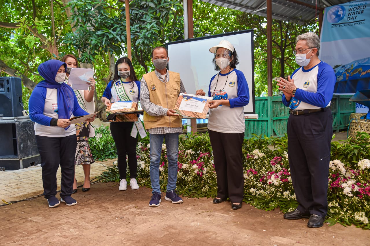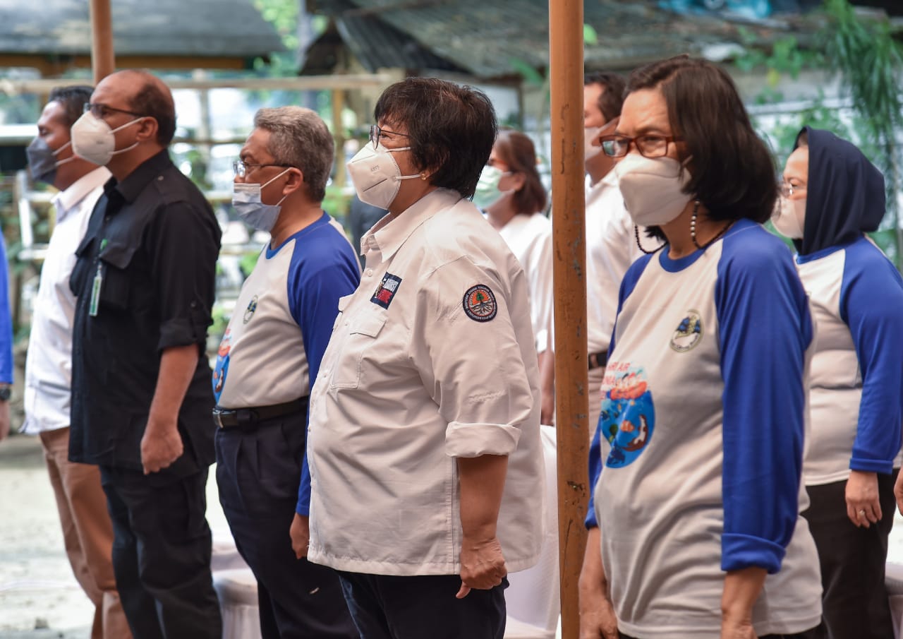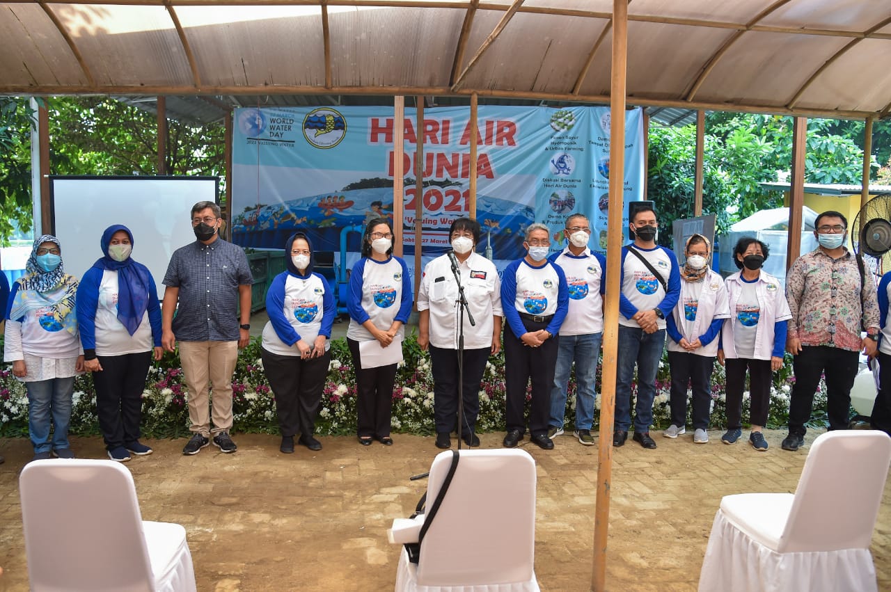 Menteri Lingkungan Hidup dan Kehutanan (LHK), Siti Nurbaya bersama dengan masyarakat dan komunitas Gerakan Ciliwung Bersih (GCB), memperingati Hari Air Sedunia tahun 2021 di Jakarta (27/3/2021). Kegiatan ini dilaksanakan di dekat badan Sungai Ciliwung tempat Komunitas GCB bekerja, dengan mematuhi protokol kesehatan untuk mencegah penyebaran Covid-19.