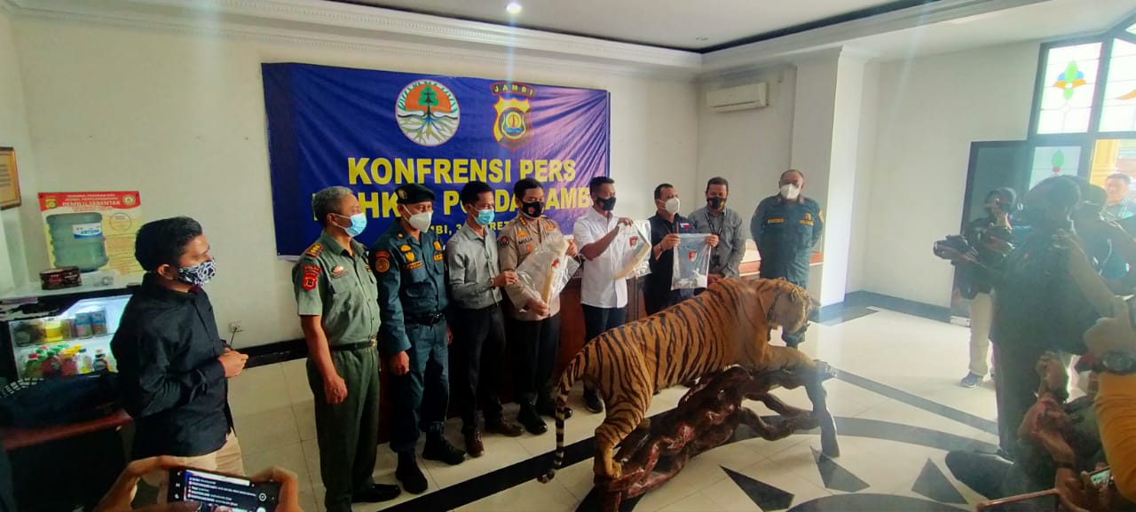 Balai Penegakan Hukum (Gakkum) KLHK Wilayah Sumatera bersama Polda Jambi berhasil menggagalkan penjualan opsetan Harimau Sumatra dan dua gading gajah. Tim operasi berhasil menangkap Pelaku perdagangan ilegal satwa dilindungi dan bagiannya berupa opsetan Harimau Sumatera (Panthera tigris sumatrae), pada 23 Maret 2021, di Kabupaten Merangin, Provinsi Jambi. Selanjutnya, tim juga berhasil menangkap pelaku perdagangan Gading Gajah (Elephas maximus sumatranus), pada 24 Maret 2021, di Kabupaten Muaro Bungo Provinsi Jambi.