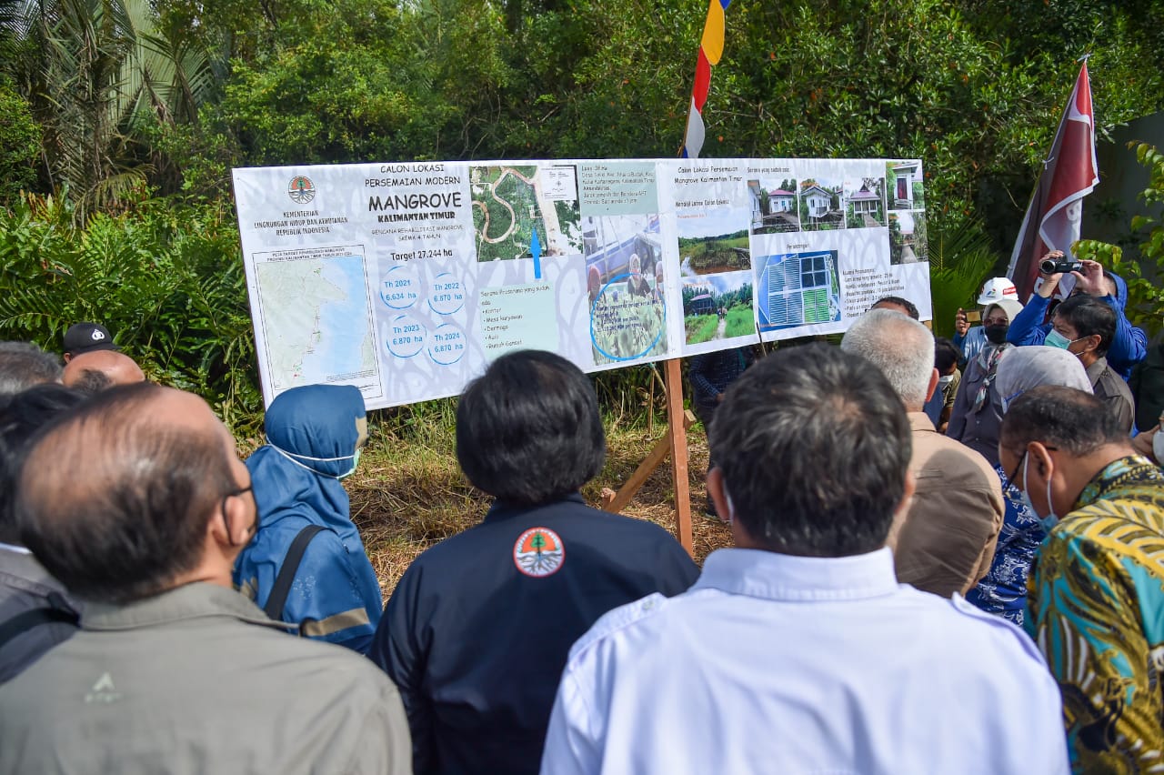Sehari sebelumnya ketika mengunjungi areal calon Ibukota Negara (IKN) Menteri Siti berujar bahwa Kementerian Lingkungan Hidup dan Kehutanan (KLHK) bersama-sama Kemenkomarves dan Kementerian Kelautan dan Perikanan, Bappenas, serta Badan Restorasi Gambut dan Mangrove (BRGM) sedang terus menata persoalan perlindungan dan rehabilitasi mangrove secara nasional termasuk di Kalimantan Timur.