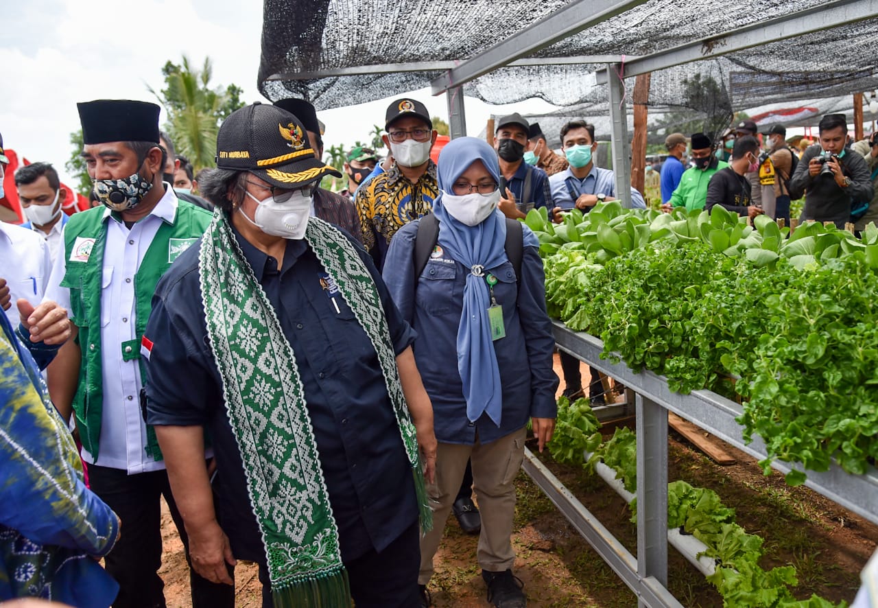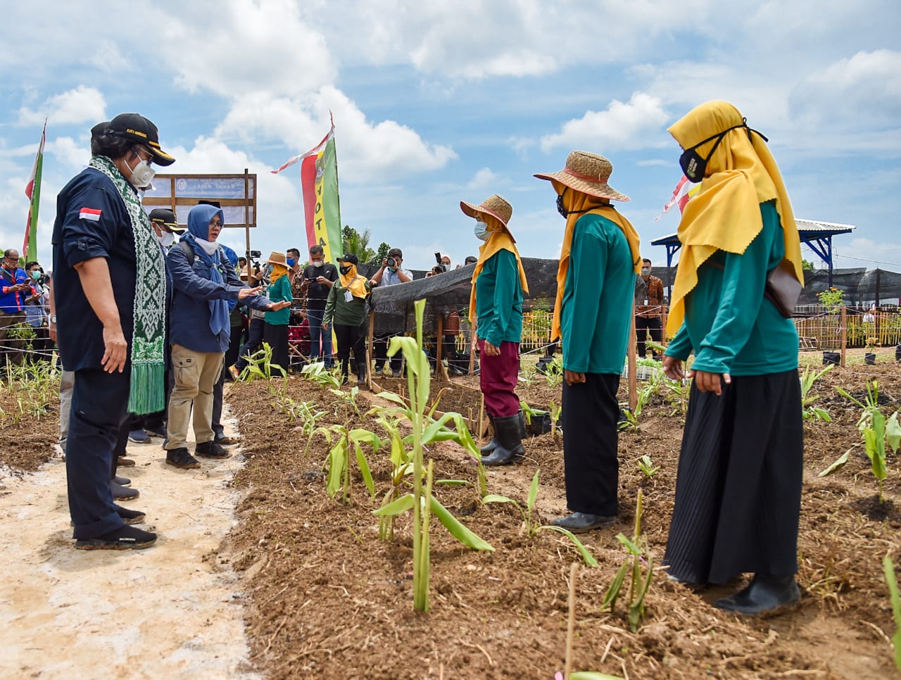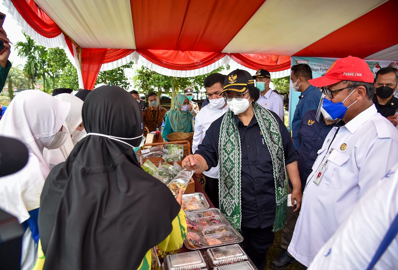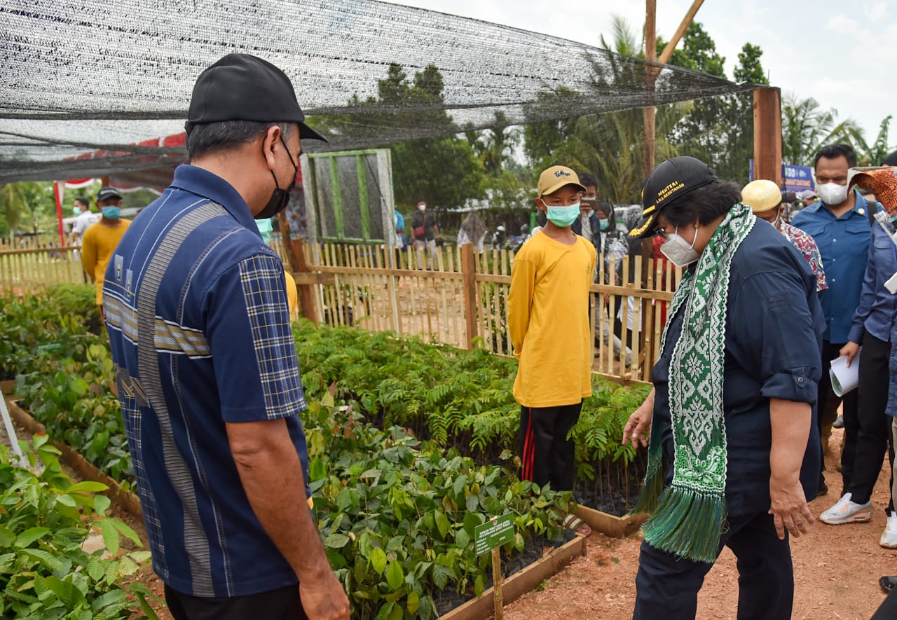 Usai menyerahkan bantuan, Menteri dan Wamen LHK bersama rombongan berkesempatan mengunjungi Kebun Bibit Desa (KBD), Kegiatan Bang Pesona, dan stand UMKM Kota Dumai.