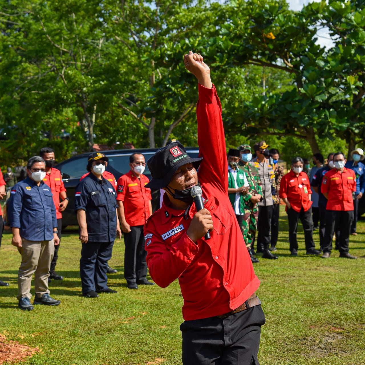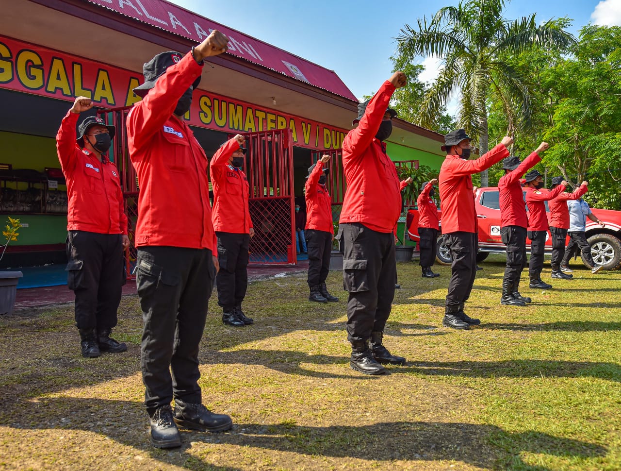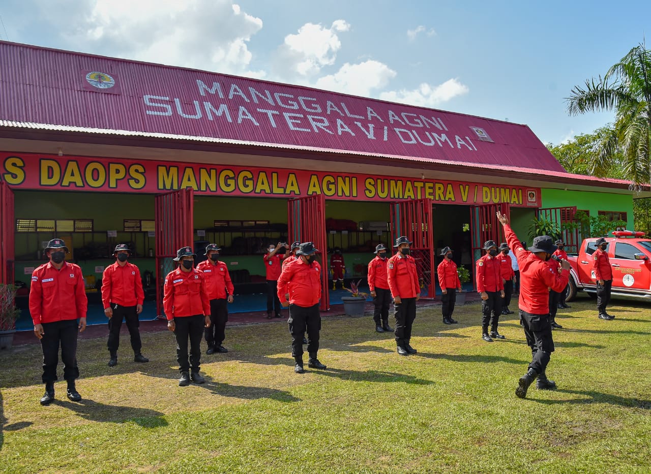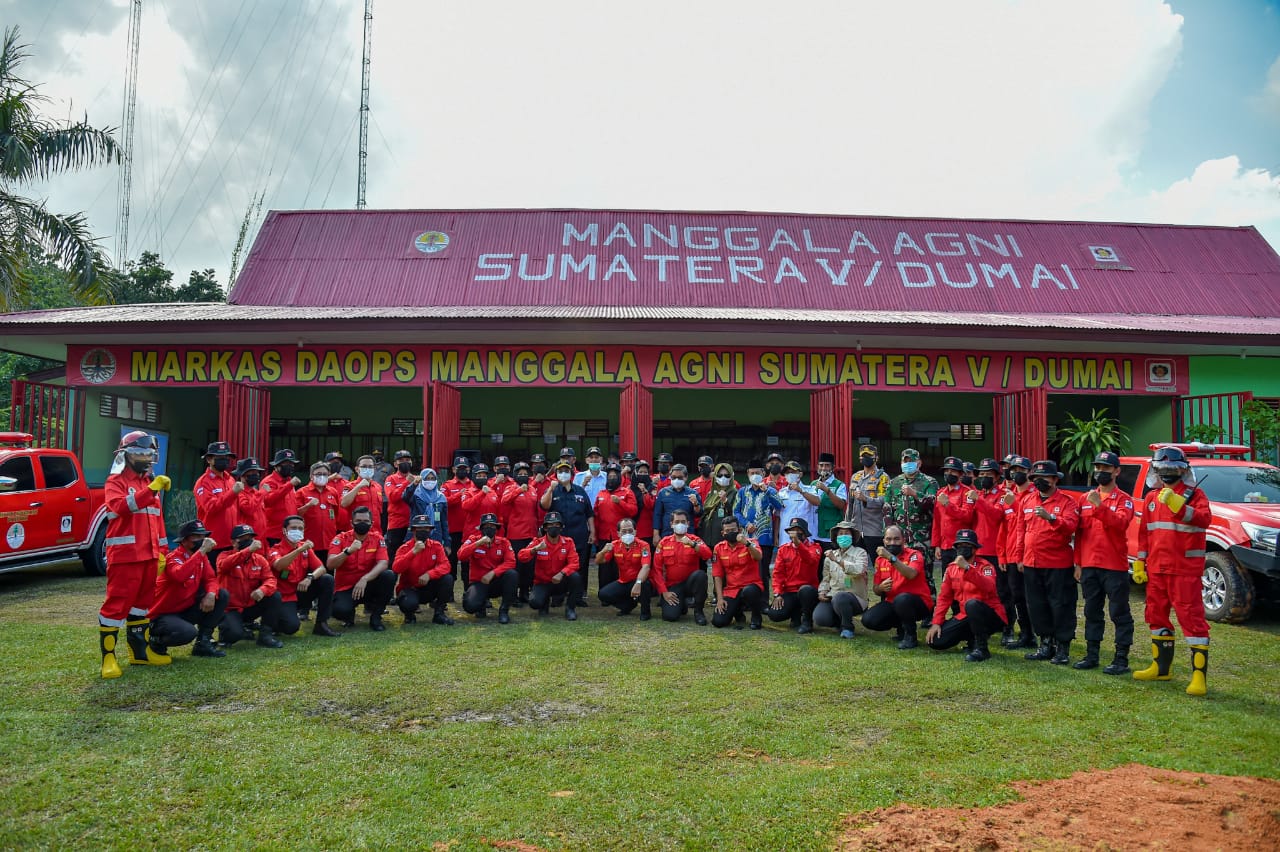 Kedatangan Menteri dan rombongan disambut sukacita dan penuh semangat oleh para Manggala Agni Daops Dumai. Mereka memberikan yel-yel sebagai bentuk semangat pengabdian mengawal pengendalian kebakaran hutan dan lahan (karhutla) bersama dengan tim Satgas.