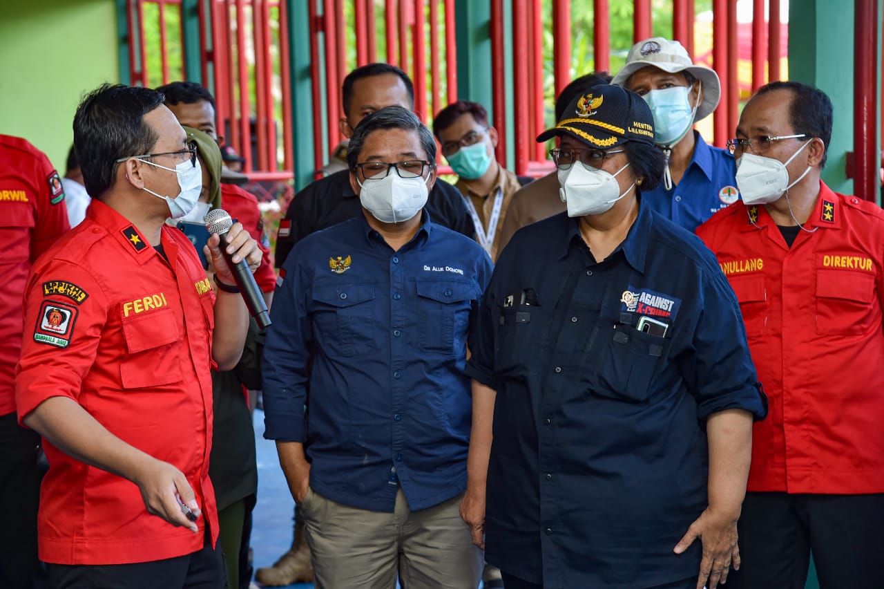 Dalam rangkaian kunjungan kerjanya ke Kota Dumai, Provinsi Riau, Menteri Lingkungan Hidup dan Kehutanan, Siti Nurbaya, dan Wakil Menteri LHK Alue Dohong, mengunjungi Daops Manggala Agni Dumai, Sabtu (10/4/2021). Turut hadir Sekdaprov Riau, Walikota dan Wakil Walikota Dumai, Forkompimda, jajaran pejabat KLHK dan Pemko Dumai.