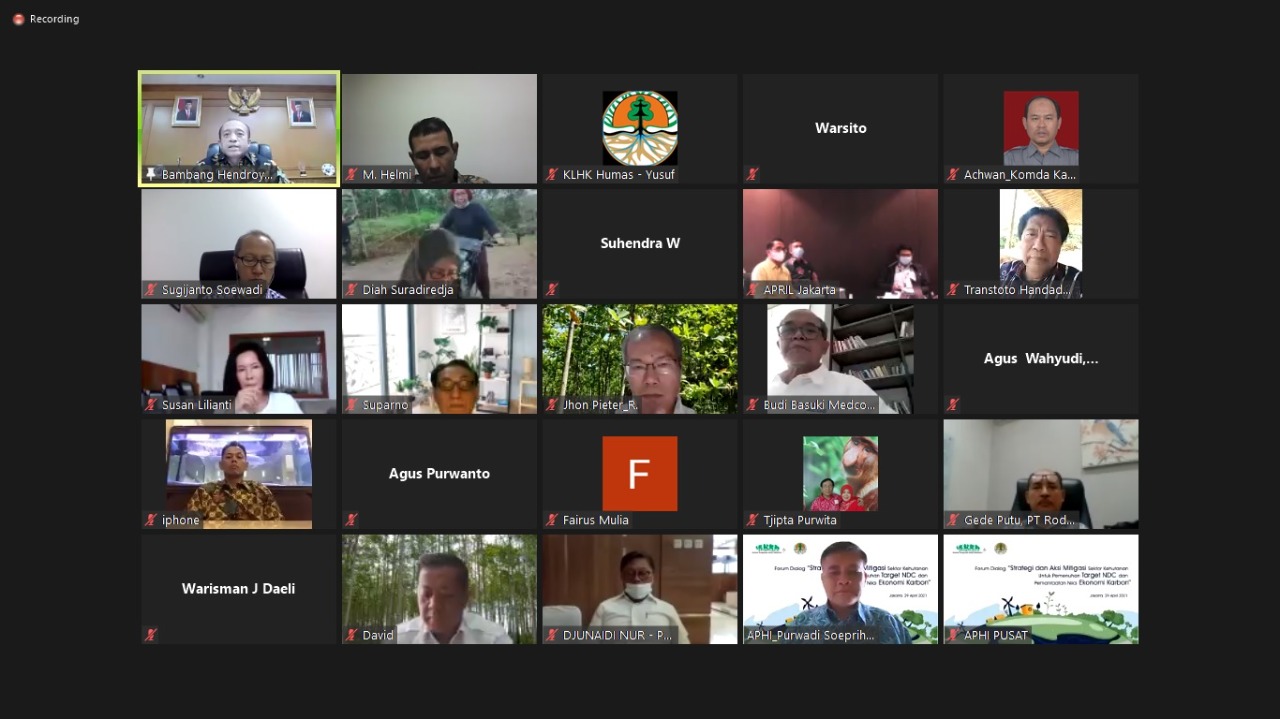 Menanggapi hal tersebut, Ketua APHI Indroyono Soesilo menyampaikan model multiusaha kehutanan tersebut, khususnya yang terkait dengan pemanfaatan jasa lingkungan, potensial menjadi bagian dari aksi mitigasi kehutanan berbasis lahan dalam rangka mendukung pencapaian target NDC Indonesia. Kontribusi pemegang Perizinan Berusaha dalam upaya mitigasi perubahan iklim dapat dilakukan dalam bentuk antara lain penerapan prinsip pengelolaan hutan lestari, perpanjangan siklus pemanenan, pengayaan, perlindungan dan pengamanan hutan serta perlindungan keanekaragaman hayati. Dari hasil aksi mitigasi tersebut, terbuka peluang bagi pemegang Perizinan Berusaha untuk memperoleh insentif berupa pemanfaatan Nilai Ekonomi Karbon (NEK).