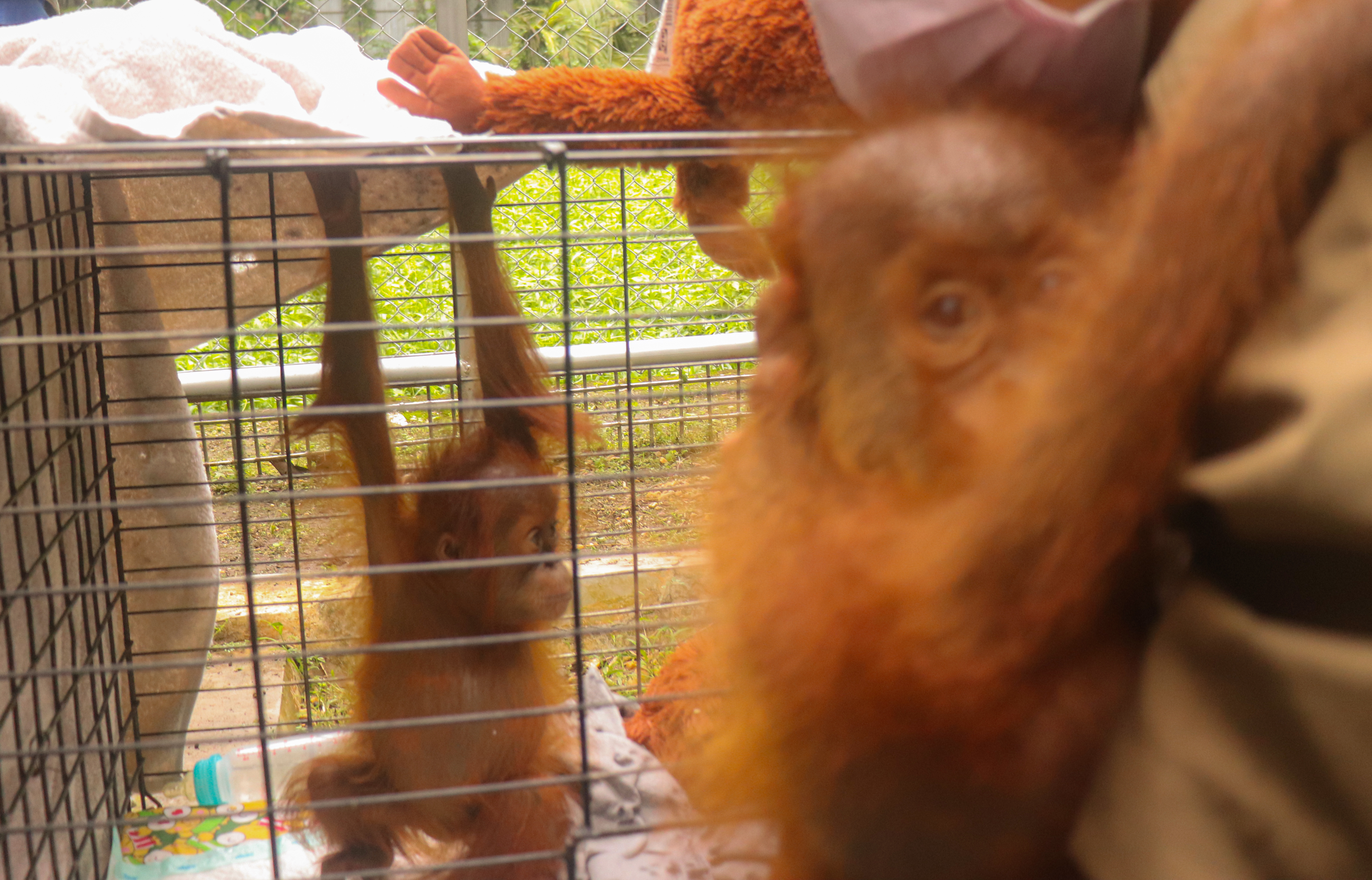 Sebelumnya pada tanggal 26 April 2021, Balai Konservasi Sumber Daya Alam (BKSDA) Bengkulu Lampung bersama dengan Kepolisian Sektor Kawasan Pelabuhan (KSKP) Bakauheni Polres Lampung Selatan, Balai Karantina Pertanian Wilayah Kerja Bakauheni dengan mitra NGO Jakarta Animal Aid Network (JAAN) dalam operasi di pelabuhan Bakauheni Lampung, berhasil menyelamatkan kedua orangutan ini yang diselundupkan dari Lubuk Pakam Sumatera Utara dengan cara diangkut menggunakan bus tujuan Tangerang. Saat ini kasusnya ditangani Penyidik Polres Lampung Selatan, dan kedua orangutan ini menjadi barang buktinya.