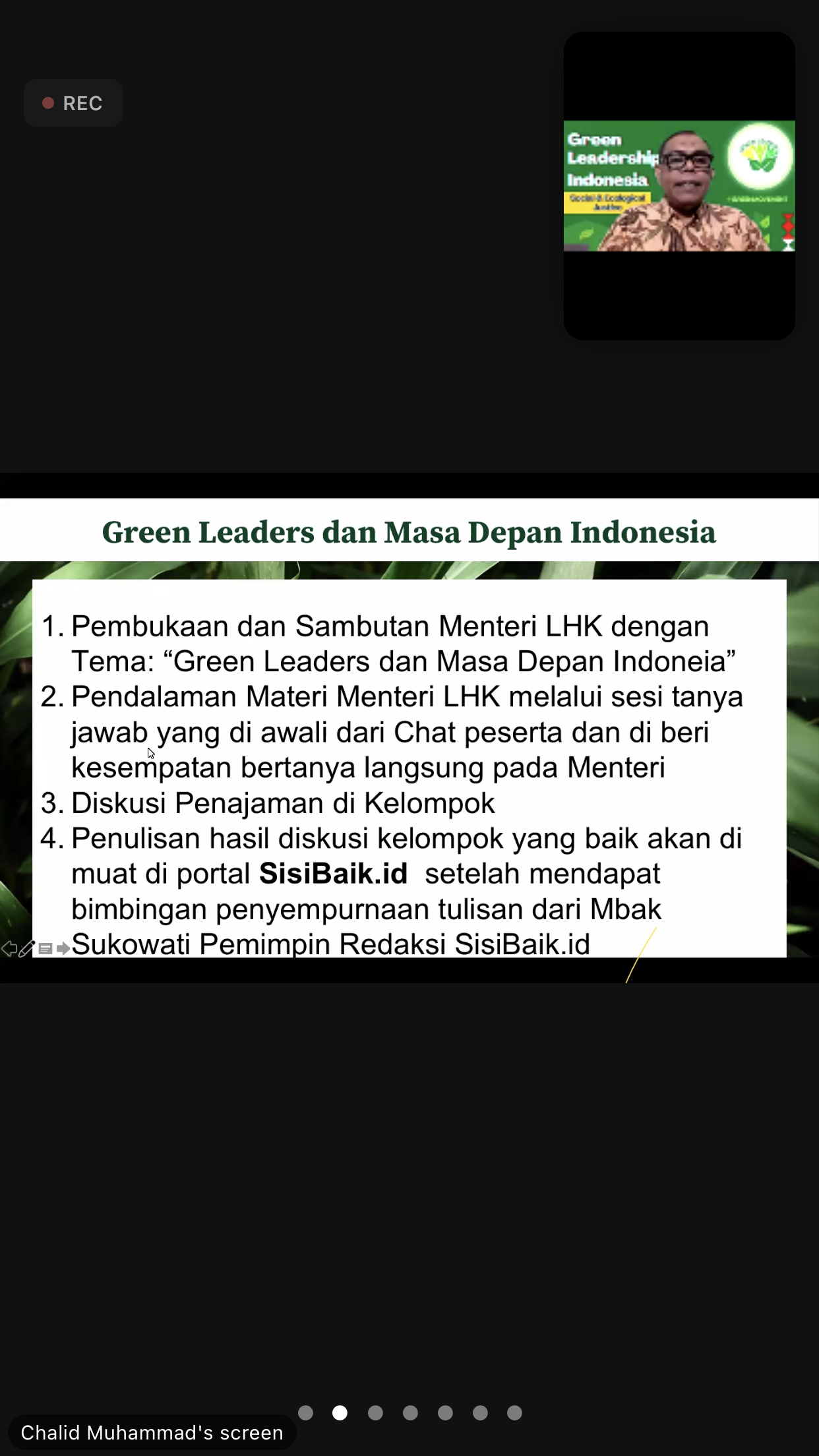 “Kita membutuhkan generasi penerus sebagai pengelola lingkungan hidup dan kehutanan kedepan, yang dibekali pendidikan, pengetahuan dan leadership (kepemimpinan). Mereka adalah awal dari potensi untuk membangun dan menjaga lingkungan hidup, sebagai generasi muda yang mencintai Indonesia”, ungkap Menteri Lingkungan Hidup dan Kehutanan Siti Nurbaya, saat membuka acara sekaligus menjadi pembicara pada Program Pendidikan Green Leaders yang digagas Institut Hijau Indonesia, di Jakarta (23/05/2021).