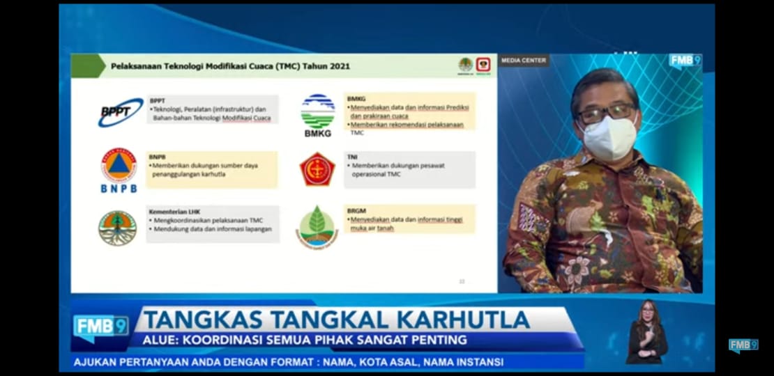 Wamen Alue Dohong menyampaikan, kerja bersama yang melibatkan berbagai pihak juga terus ditingkatkan untuk mencegah karhutla. "Sekarang, kita terus laksanakan rapat koordinasi bulanan untuk penanggulangan karhutla yang melibatkan berbagai pihak termasuk pemerintah daerah. Koordinasi ini sangat penting, seperti sharing data dan informasi, misalnya data prediksi jumlah hari tanpa hujan dan kekeringan dari BMKG," ungkap Wamen Alue Dohong.
