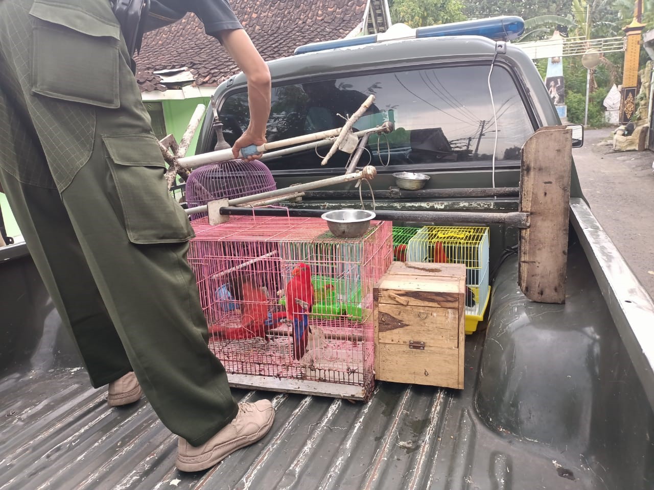 Menerima laporan awal dari petugas terkait perdagangan illegal satwa dilindungi tersebut, Kepala Balai KSDA Yogyakarta, M. Wahyudi memerintahkan personil Resort Konservasi Wilayah (RKW) Sleman – Yogyakarta untuk menindaklanjuti kasus tersebut dengan Tim Ditreskrimsus Polda DIY. Hasil temuan di lapangan dari kediaman pemilik satwa yang berada di Kecamatan Umbulharjo, berhasil ditemukan jenis-jenis satwa dilindungi yaitu masing-masing satu ekor Perkici iris (Psitteuteles iris), Nuri raja ambon (Alisterus amboinensis), Kasturi ternate (Lorius garrulus), Kakatua tanimbar/goffin (Cacatuq goffiniana), Kakatua jambul kuning (Cacatua sulphurea), dan Perkici timor (Trichoglossus euteles), serta dua ekor Nuri tanimbar (Eos reticulata). Barang bukti selanjutnya dititipkan ke Balai KSDA Yogyakarta untuk dilakukan kegiatan penyelamatan dan perawatan lebih lanjut.