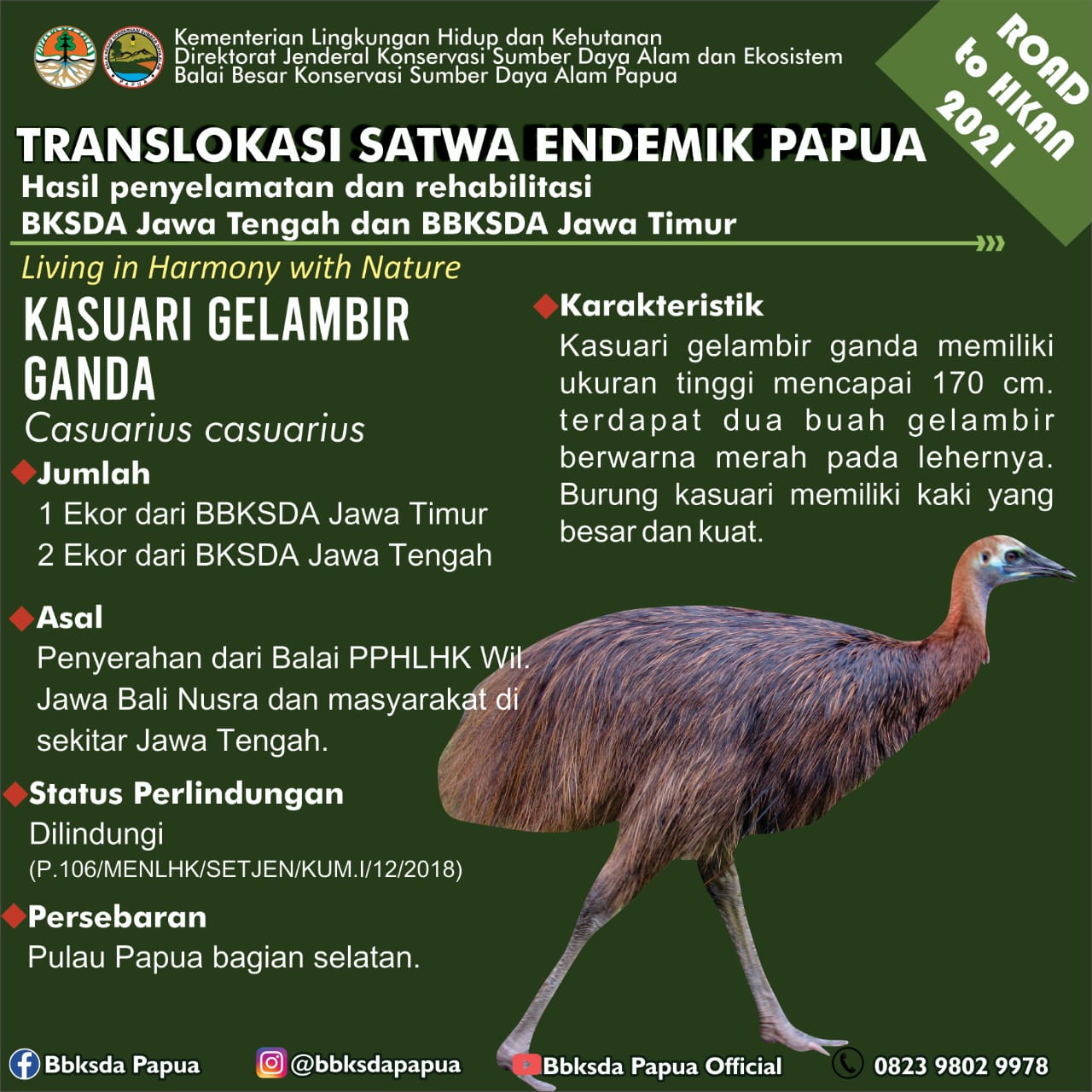 “Pengembalian satwa endemik Papua ke Pulau Papua merupakan bagian dari komitmen BBKSDA Jawa Timur untuk terus berupaya menyelamatkan satwa hasil penegakan hukum dan penyerahan masyarakat secara sukarela di Provinsi Jawa Timur. Ini juga menjadi bagian dari sosialisasi dan edukasi bagi semua pihak untuk bersama-sama terlibat dalam penyelamatan satwa liar,” ujar Asep.