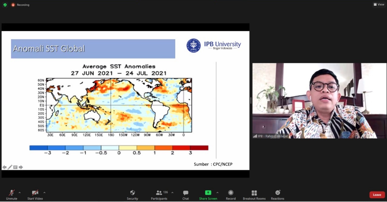 Pada rapat kali ini, Kepala BMKG, Prof. Dwikorita Karnawati menyampaikan prediksi iklim dan cuaca tahun 2021 di Indonesia. Dwikorita dalam paparannya memberikan kesimpulan bahwa Indeks ENSO Juli 2021 menunjukkan kondisi Netral dan diprakirakan Netral hingga awal tahun 2022.