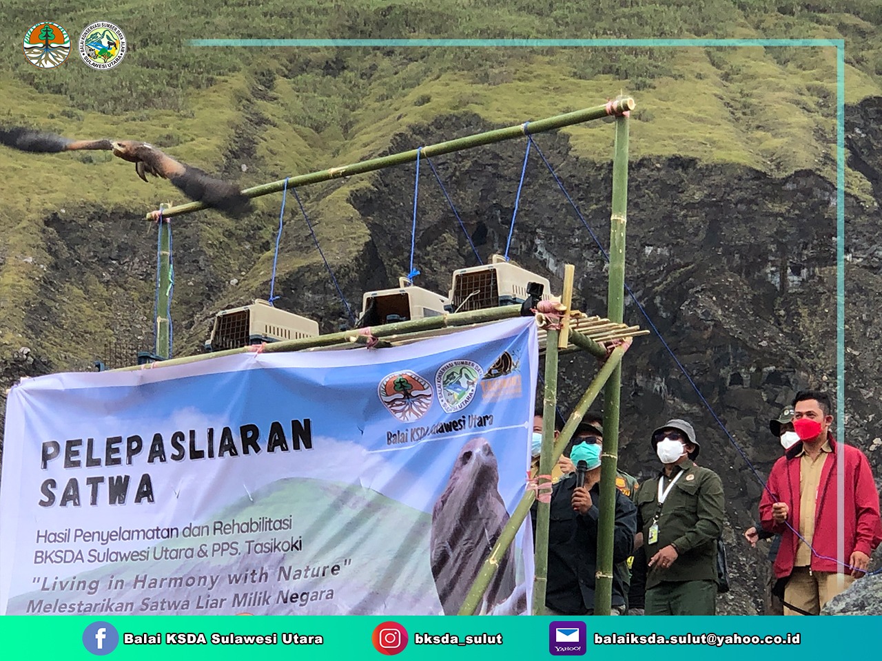 Kegiatan pelepasliaran ini dilakukan dalam rangka mensukseskan rangkaian acara Hari Konservasi Alam Nasional Tahun 2021, yang mengusung tema: “Living in Harmony With Nature”. Acara di hadiri oleh Pemerintah Kota Tomohon, Dinas Kehutanan Provinsi Sulawesi Utara, Balai Karantina Pertanian Kelas I Manado, Kepala Seksi Wilayah III-BPPLHK Wilayah Sulawesi, Para Mitra lingkup BKSDA Sulawesi Utara.