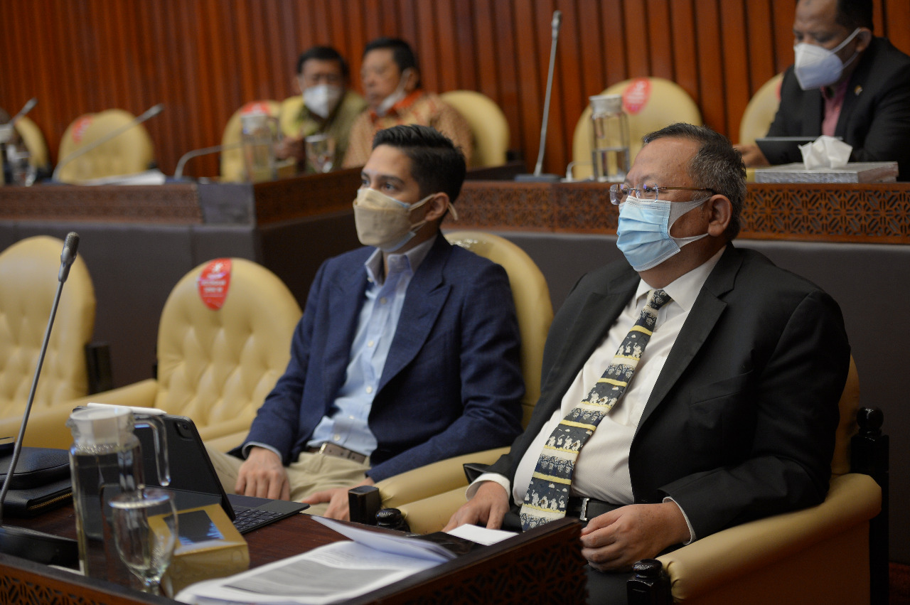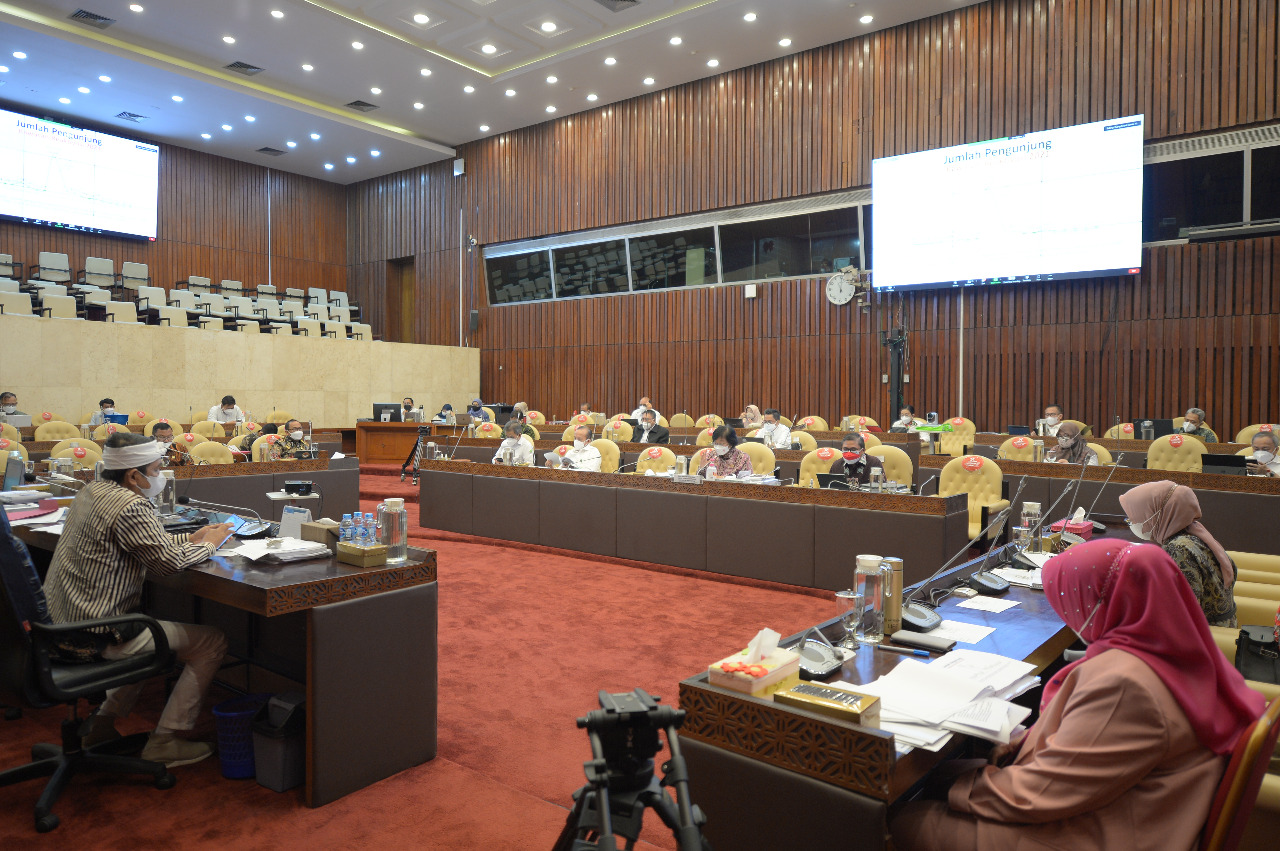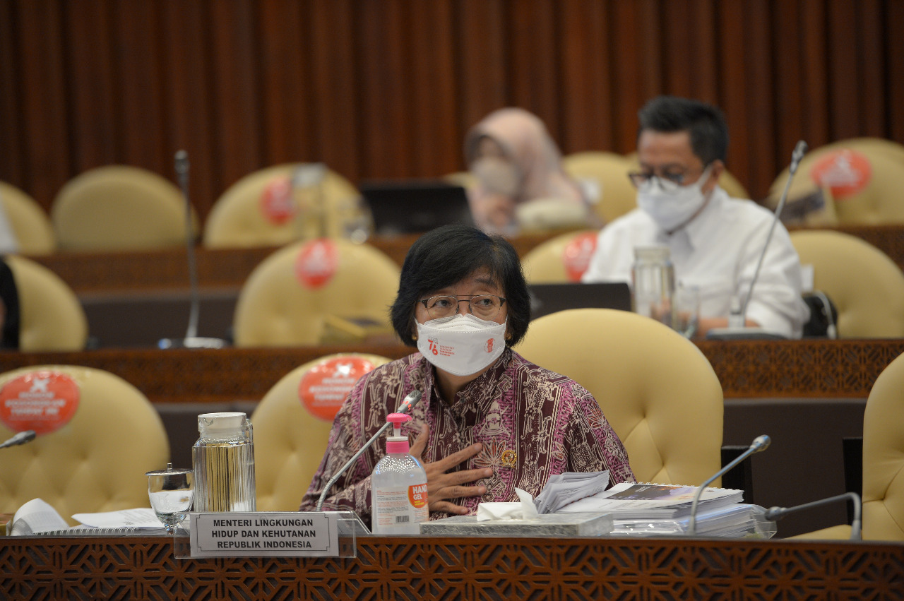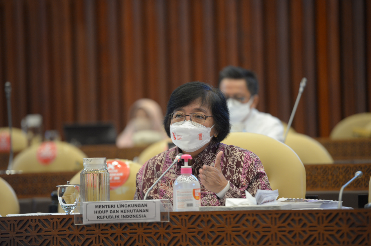 Menteri LHK Siti Nurbaya beserta jajaran KLHK dan Badan Restorasi Gambut dan Mangrove (BRGM) serta Direksi Perhutani dan Inhutani, mengikuti Rapat Kerja (Raker) dengan Komisi IV DPR RI, Kamis (26/8). Raker tersebut membahas Laporan Keuangan Pemerintah Pusat APBN TA.2020, Evaluasi Anggaran Tahun 2021, RKA K/L Tahun 2022, usulan program-program yang akan didanai oleh DAK berdasarkan kriteria teknis dari Komisi, dan isu-isu aktual bidang Lingkungan Hidup dan Kehutanan.
