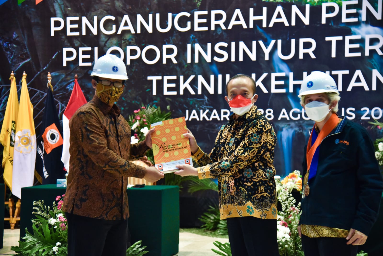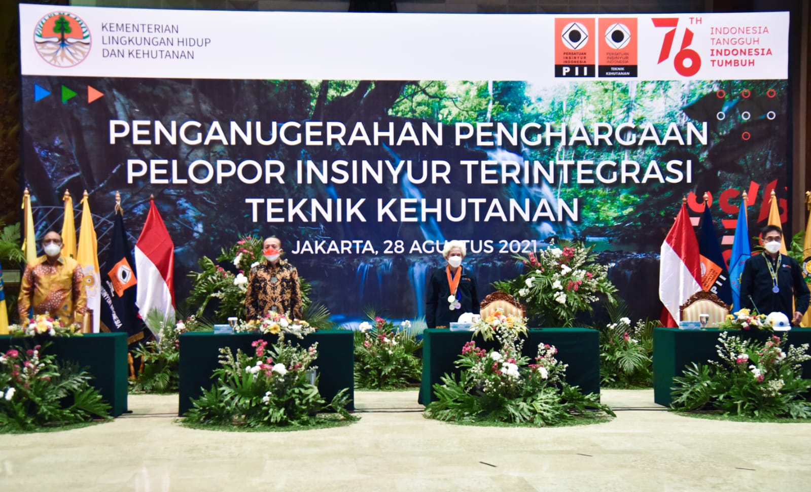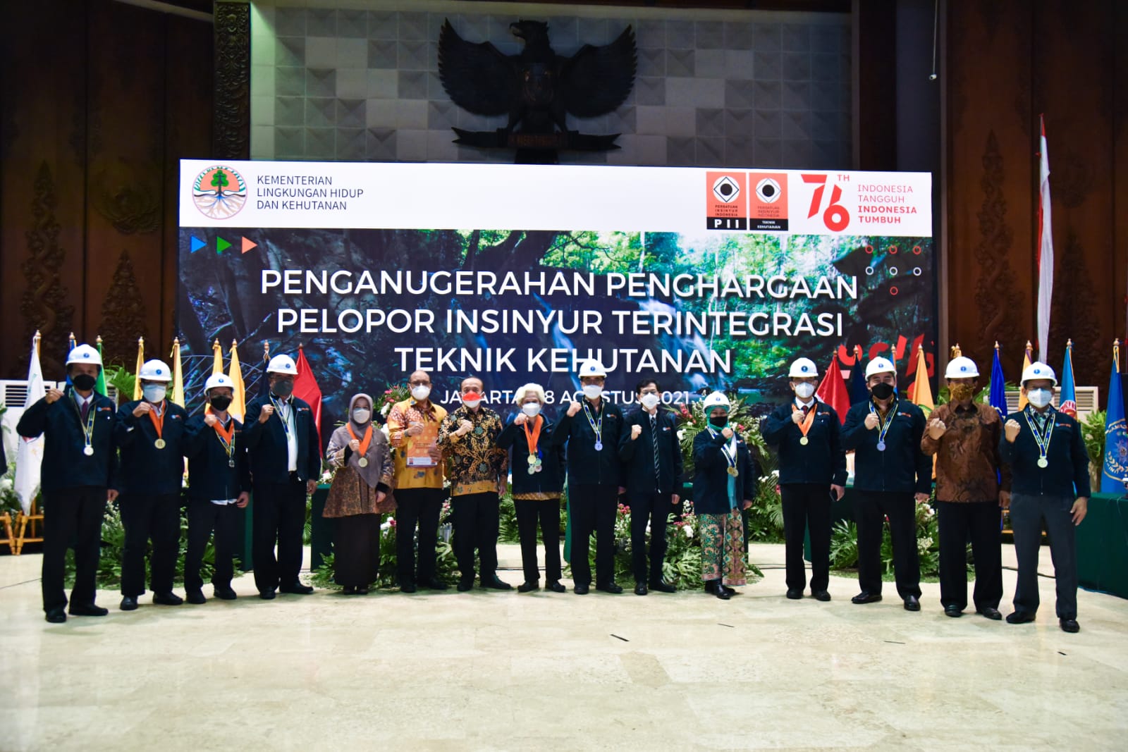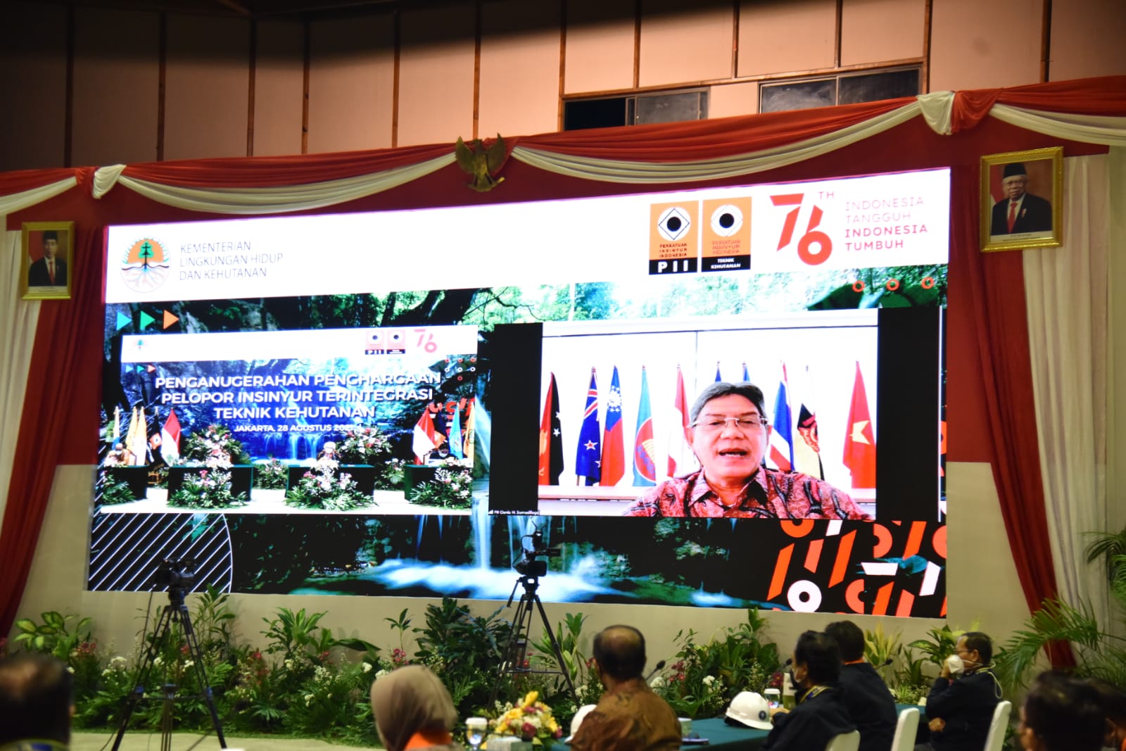 Kementerian Lingkungan Hidup dan Kehutanan (KLHK) berikan anugerah piagam penghargaan kepada 454 Insinyur Profesional PII-Teknik Kehutanan sebagai pelopor profesi insinyur teregistrasi teknik kehutanan di Jakarta (28/8/2021). Sekretaris Jenderal KLHK, Bambang Hendroyono mewakili Menteri LHK memberikan anugerah tersebut secara hybrid (faktual dan virtual) terbatas.