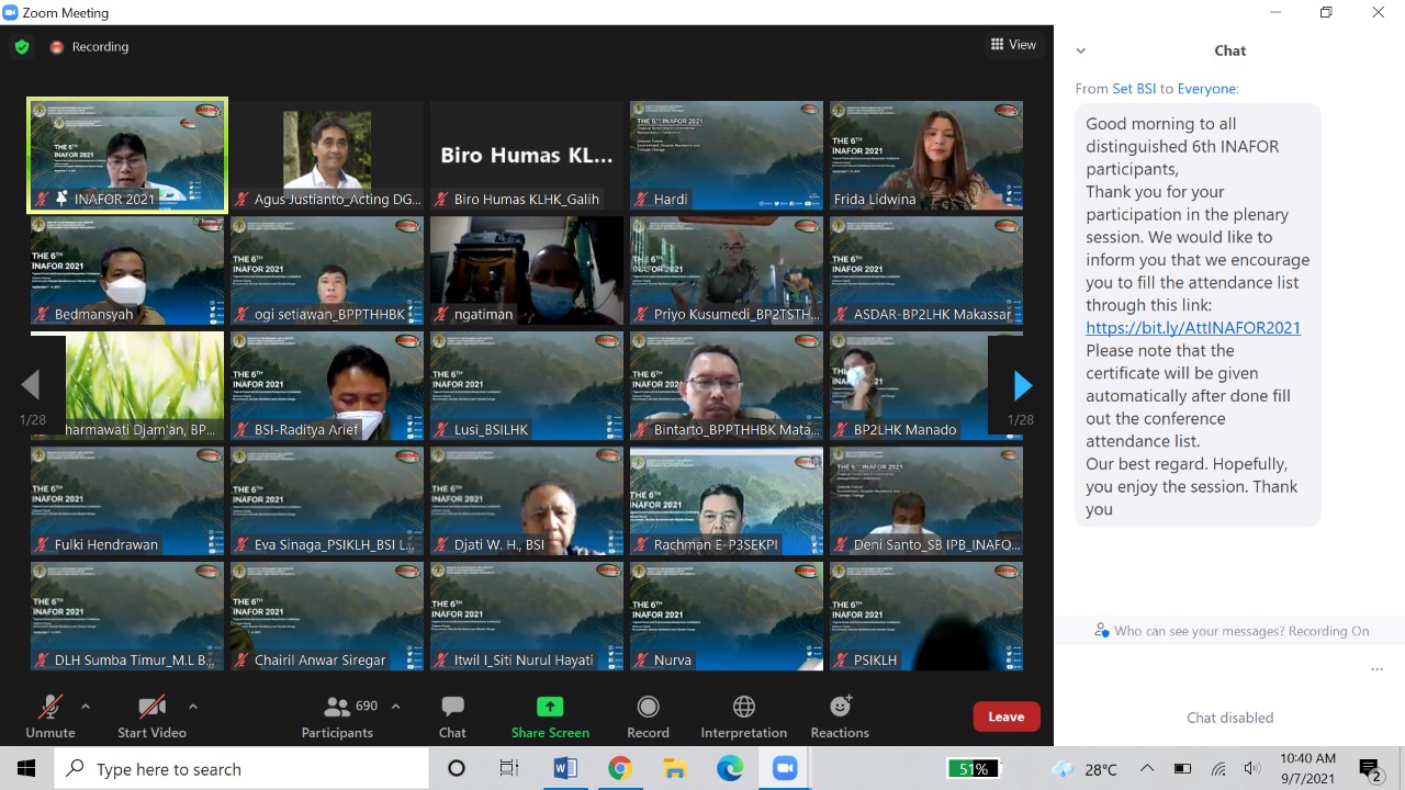 Lebih dari 1000 peserta hadir dalam The 6th INAFOR 2021 ini. Karenanya, acara ini sangat strategis dan merupakan momen penting untuk mengingatkan kembali bahwa sains dan teknologi menjadi tolok ukur kemajuan bangsa. Selain juga hutan dan lingkungan lestari, serta bentang alam yang dikelola secara berkelanjutan sangat penting bagi pemangku kepentingan untuk mencapai target SDGs.