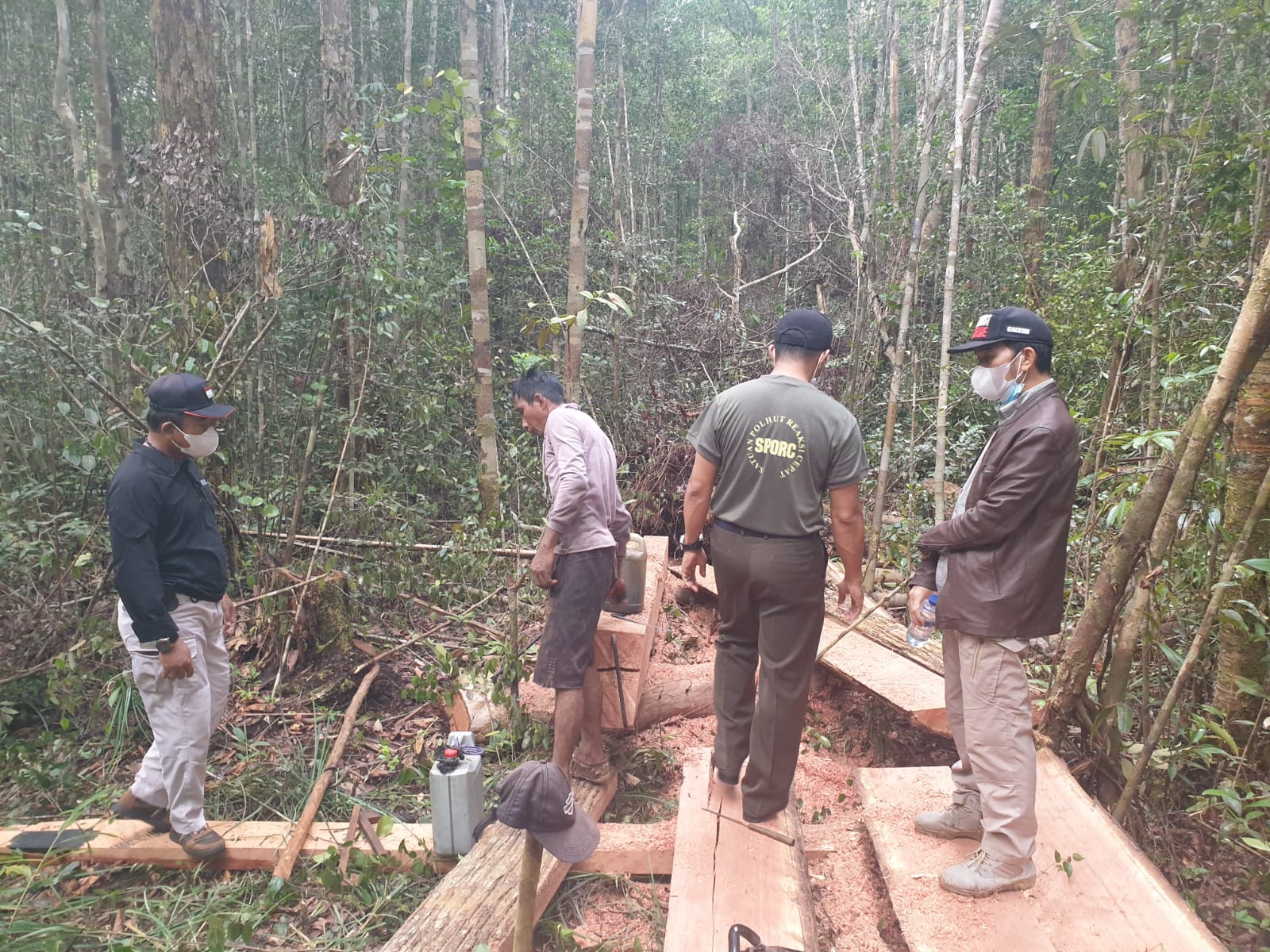 Tim juga mengamankan barang bukti berupa 1 m3 kayu olahan berbagai ukuran, 2 chainsaw, meteran, kikir, bar chainsaw, rantai chainsaw, jerigen berisi bensin dan oli, palu, kunci pas, jangka siku, jangka pengukur belahan kayu, jangka besi pengait dan penahan kayu.