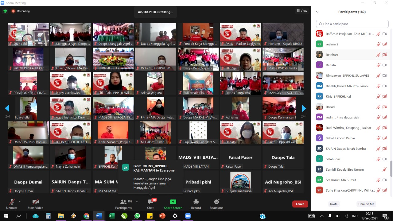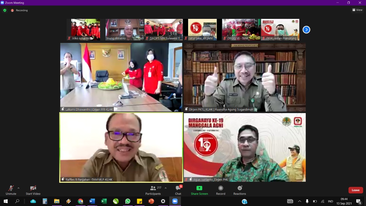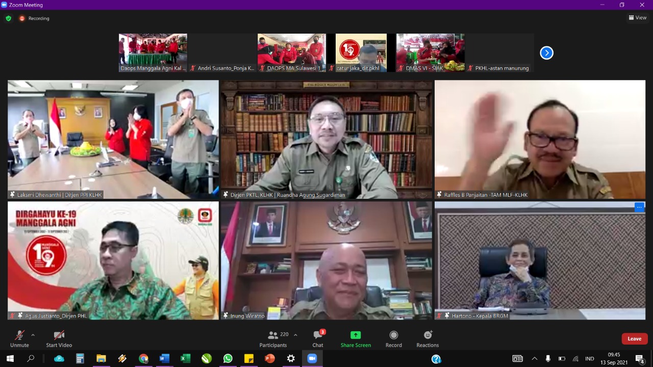 Direktur Jenderal Pengendalian Perubahan Iklim memimpin langsung peringatan Hari Ulang Tahun Manggala Agni secara virtual dan faktual, Senin (13/9/2021). Selama 19 tahun, Manggala Agni telah melakukan berbagai upaya dalam pengendalian kebakaran hutan dan lahan di wilayah rawan di Indonesia.