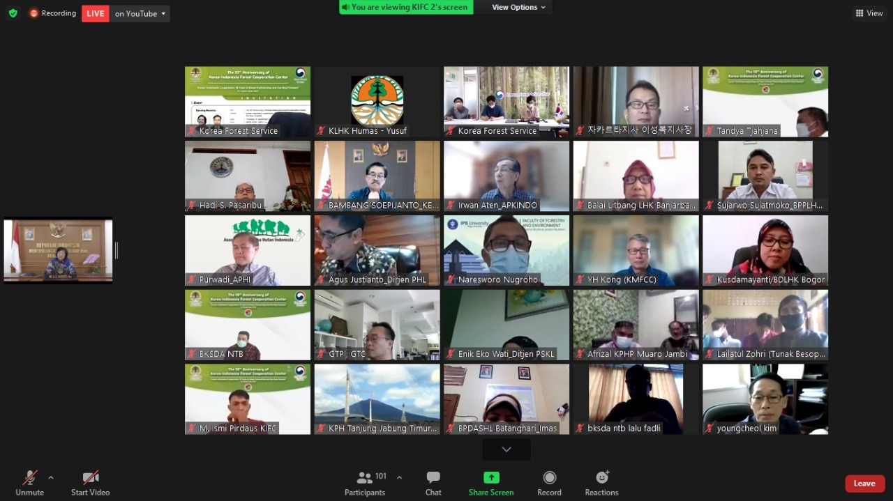 Hal tersebut disampaikan Menteri LHK Siti Nurbaya saat memberikan sambutan pada Perayaan Ulang Tahun ke-10 Korea-Indonesia Forest Center (KIFC) secara virtual, Kamis (16/9). Menteri Siti mengatakan lahan gambut dan mangrove dapat menjadi fokus kerja sama antara Indonesia dan Republik Korea. Dalam hal ini, KIFC dapat memfasilitasi dan memberikan dukungan terhadap pelaksanaan Program Kolaborasi kedua negara, yang sejalan dengan program prioritas di bidang kehutanan.