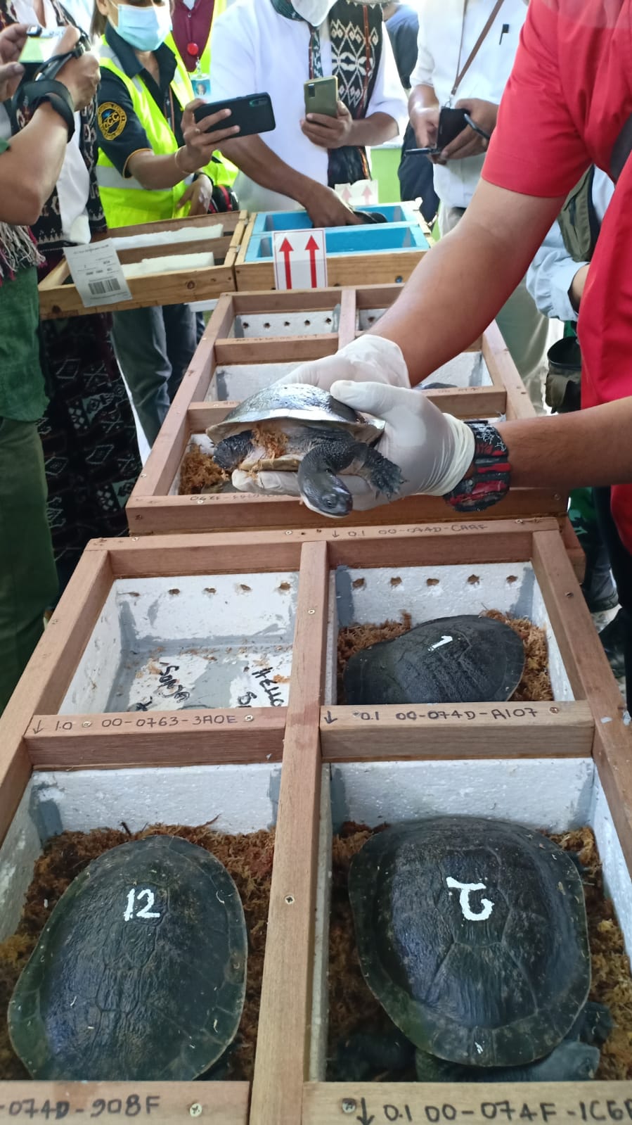 Hadir dalam acara menyambut kedatangan Kura-kura Rote Sekretaris Daerah Provinsi Nusa Tenggara Timur, Komandan Lanud El Tari Kupang, Kepala Dinas LHK Provinsi Nusa Tenggara Timur, Kepala Balai Penelitian dan Pengembangan LHK Kupang, Asisten 2 dan Kepala Dinas Perikanan Kabupaten Rote NDao, Kepala Kantor Pengawasan dan Pelayanan Bea Cukai Tipe Madya Pabean C Kupang, Kepala Wilayah kerja Karantina Ikan Kupang, General Manager PT. Angkasa Pura I El Tari Kupang, Pimpinan Cabang PT. Garuda Indonesia Nusa Tenggara Timur, Koordinator Wilayah Kerja Karantina Ikan El Tari Kupang dan Tokoh Masyarakat adat pemilik danau Lendoen, Peto dan Ledulu.