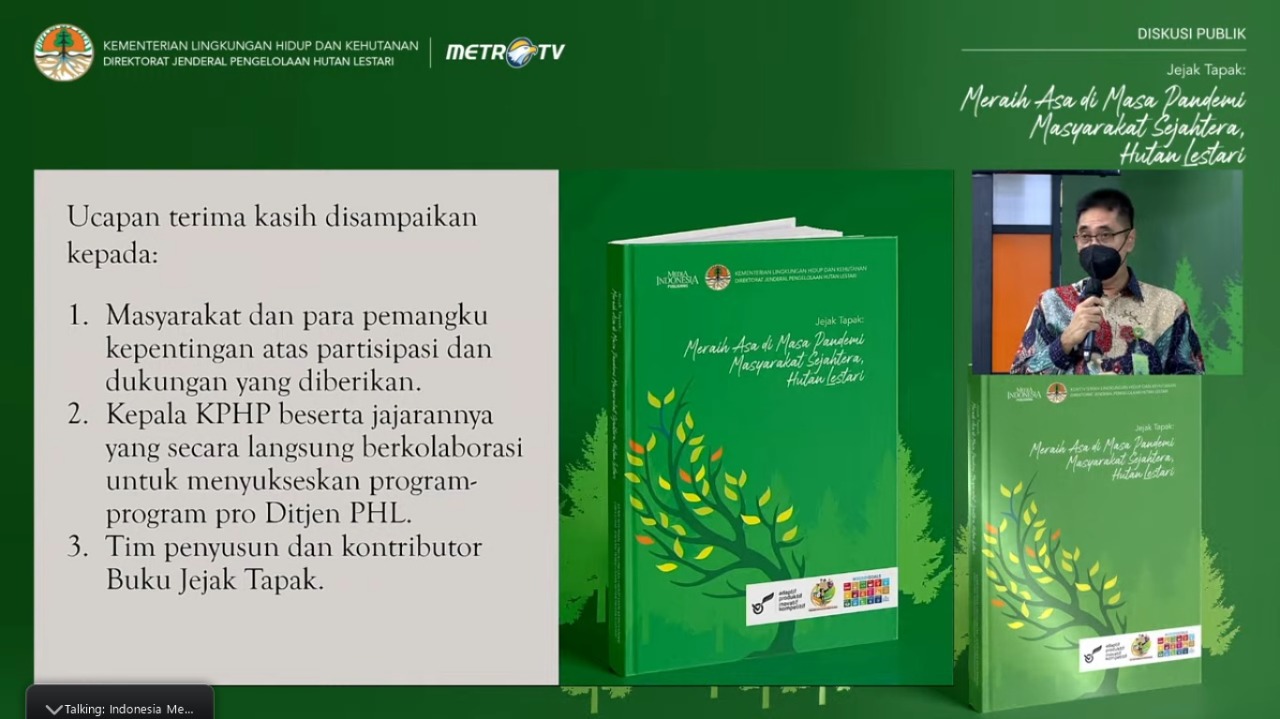 Direktorat Jenderal Pengelolaan Hutan Lestari (Ditjen PHL) KLHK menggelar webinar diskusi publik “Jejak Tapak: Meraih Asa di Masa Pandemi, Masyarakat Sejahtera, Hutan Lestari”, di Jakarta, Selasa (28/9). Tujuan acara ini untuk memberikan kesempatan bagi para pemangku kepentingan untuk mendapatkan perspektif yang utuh tentang upaya Ditjen PHL KLHK dalam menjaga iklim usaha kehutanan di masa pandemi.